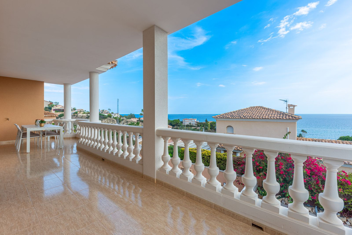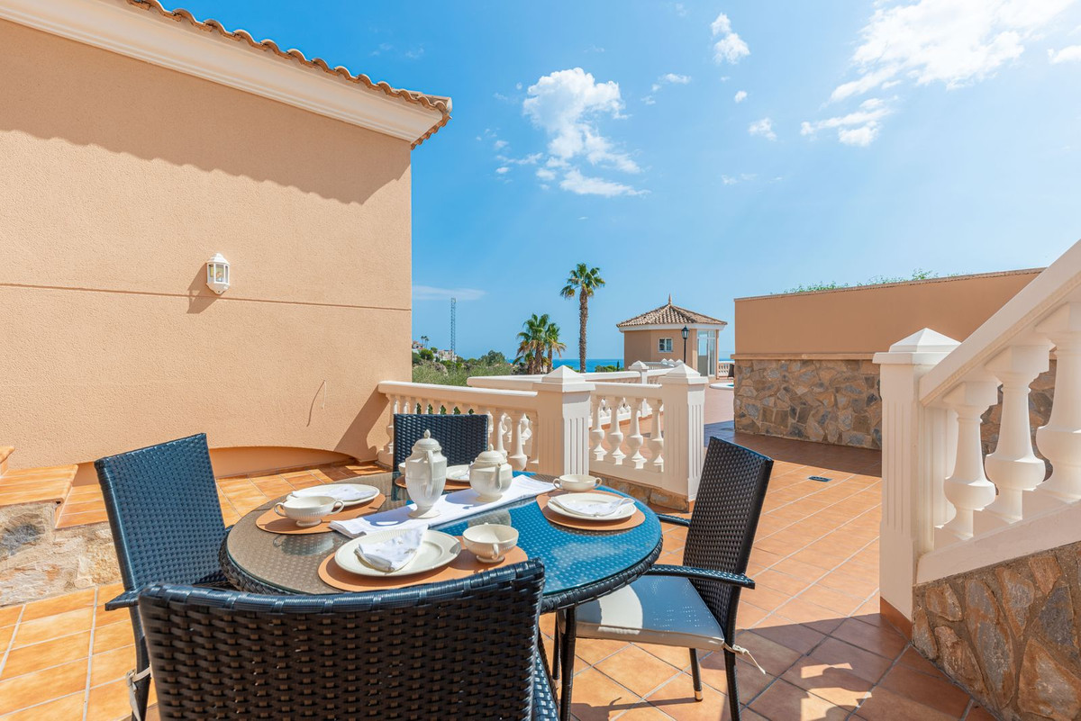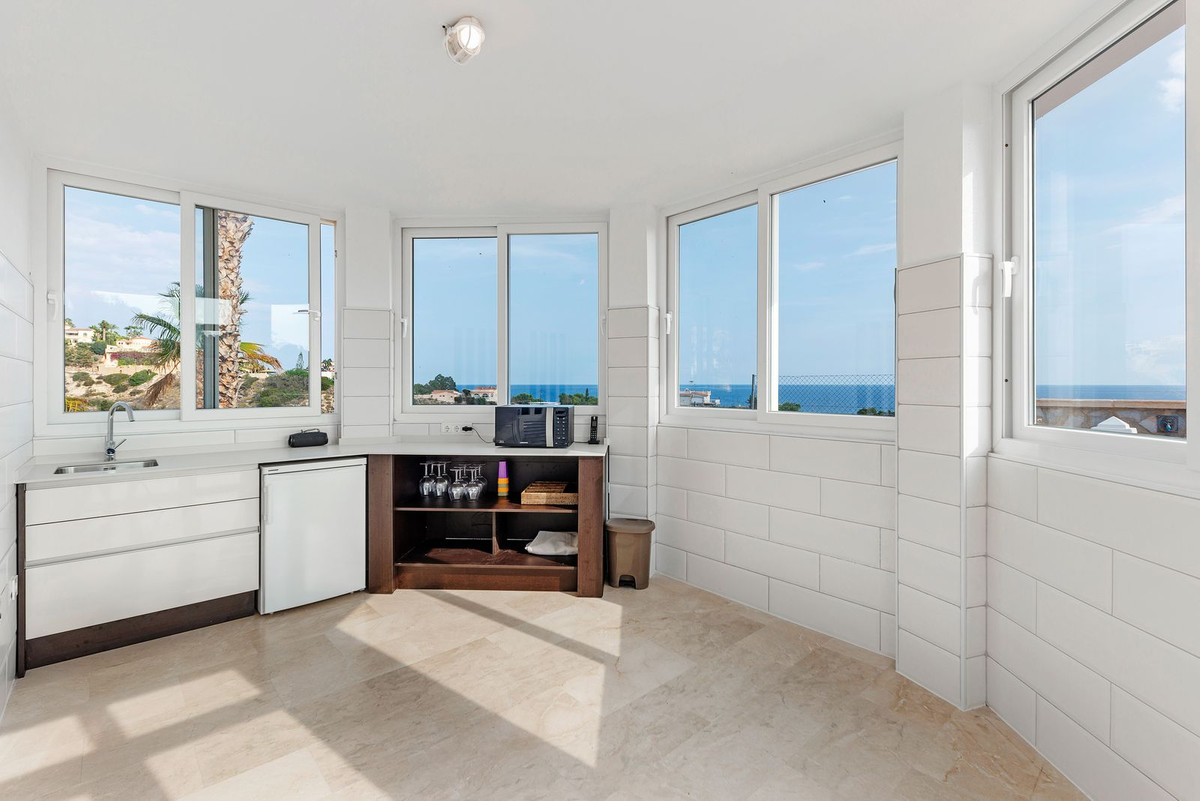 Conveniently positioned just a stone's throw away from the beach cove "Cala de Les Piteres" and a short drive from both the charming fishing village of Villajoyosa to the north and the picturesque coastal town of El Campello to the south, this residence offers commanding sea and mountain vistas, and is within walking distance of the beach and the nearby tram station.