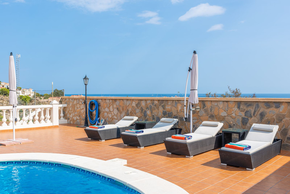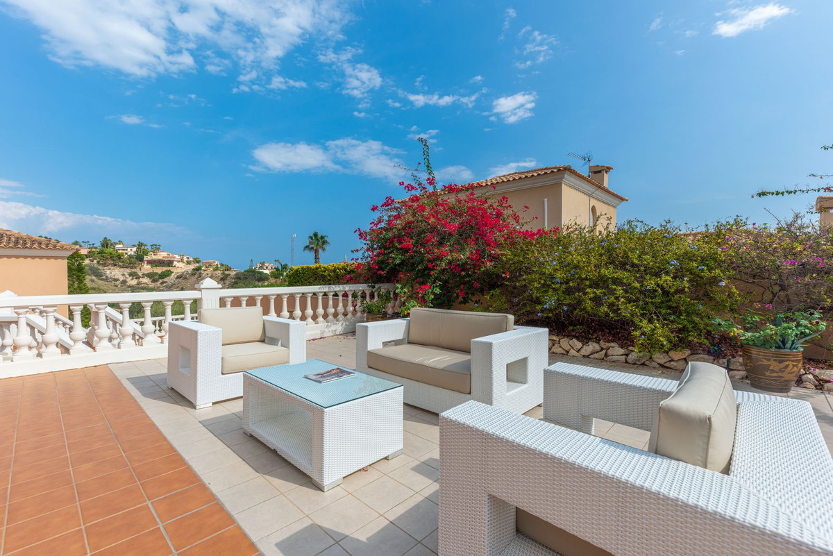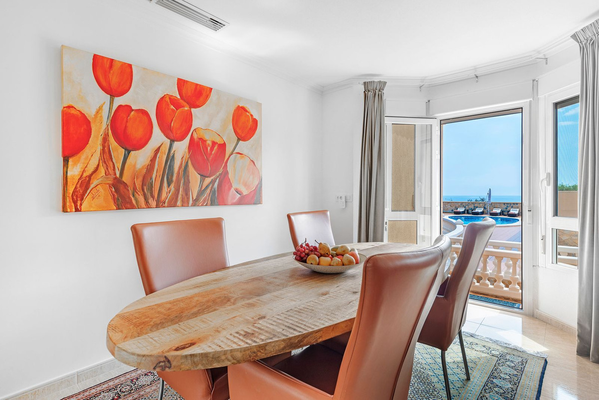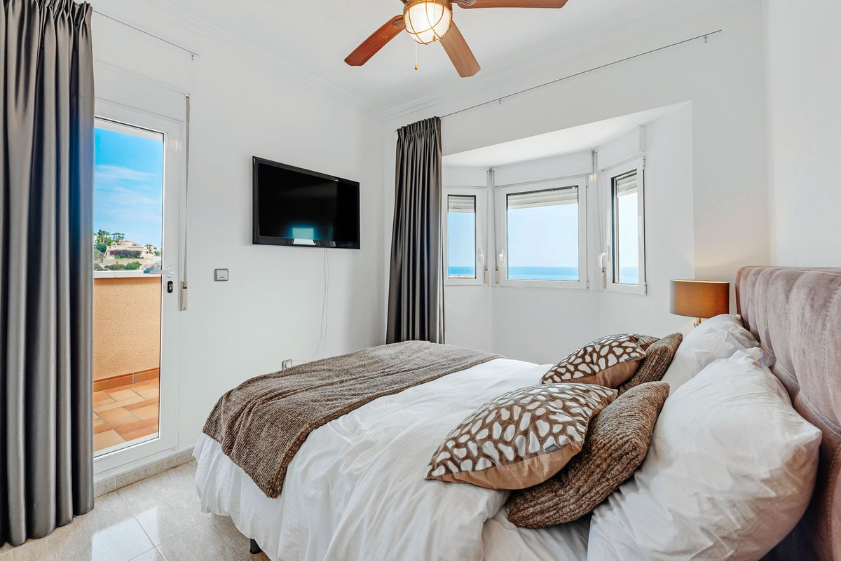 Conveniently positioned just a stone's throw away from the beach cove "Cala de Les Piteres" and a short drive from both the charming fishing village of Villajoyosa to the north and the picturesque coastal town of El Campello to the south, this residence offers commanding sea and mountain vistas, and is within walking distance of the beach and the nearby tram station.