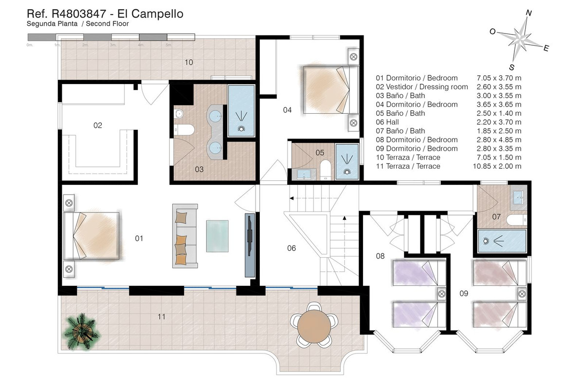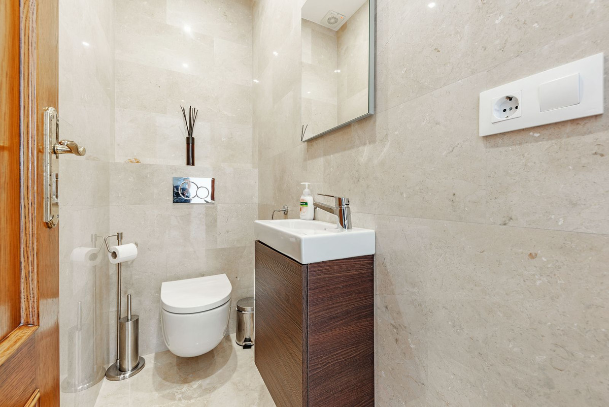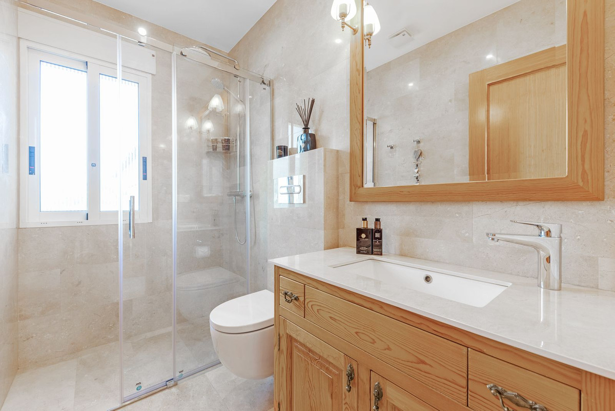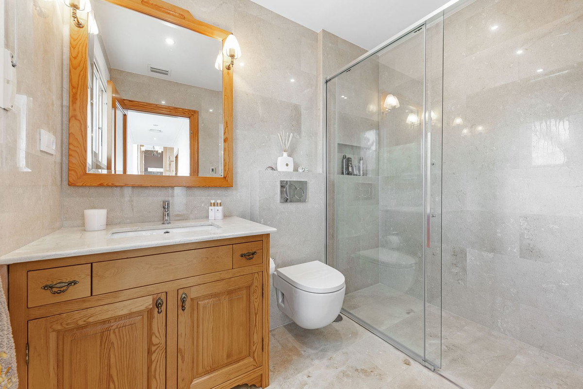 Upper Floor: The master suite is an oasis of luxury, featuring a generous living area, a walk-in closet, and a lavish en-suite bathroom with double sinks. The suite opens directly onto a terrace with captivating sea views. Three additional double bedrooms, one with an en-suite bathroom, are located on this floor, along with a separate bathroom serving the other two bedrooms. Every room on this level enjoys stunning vistas of the surrounding natural beauty.