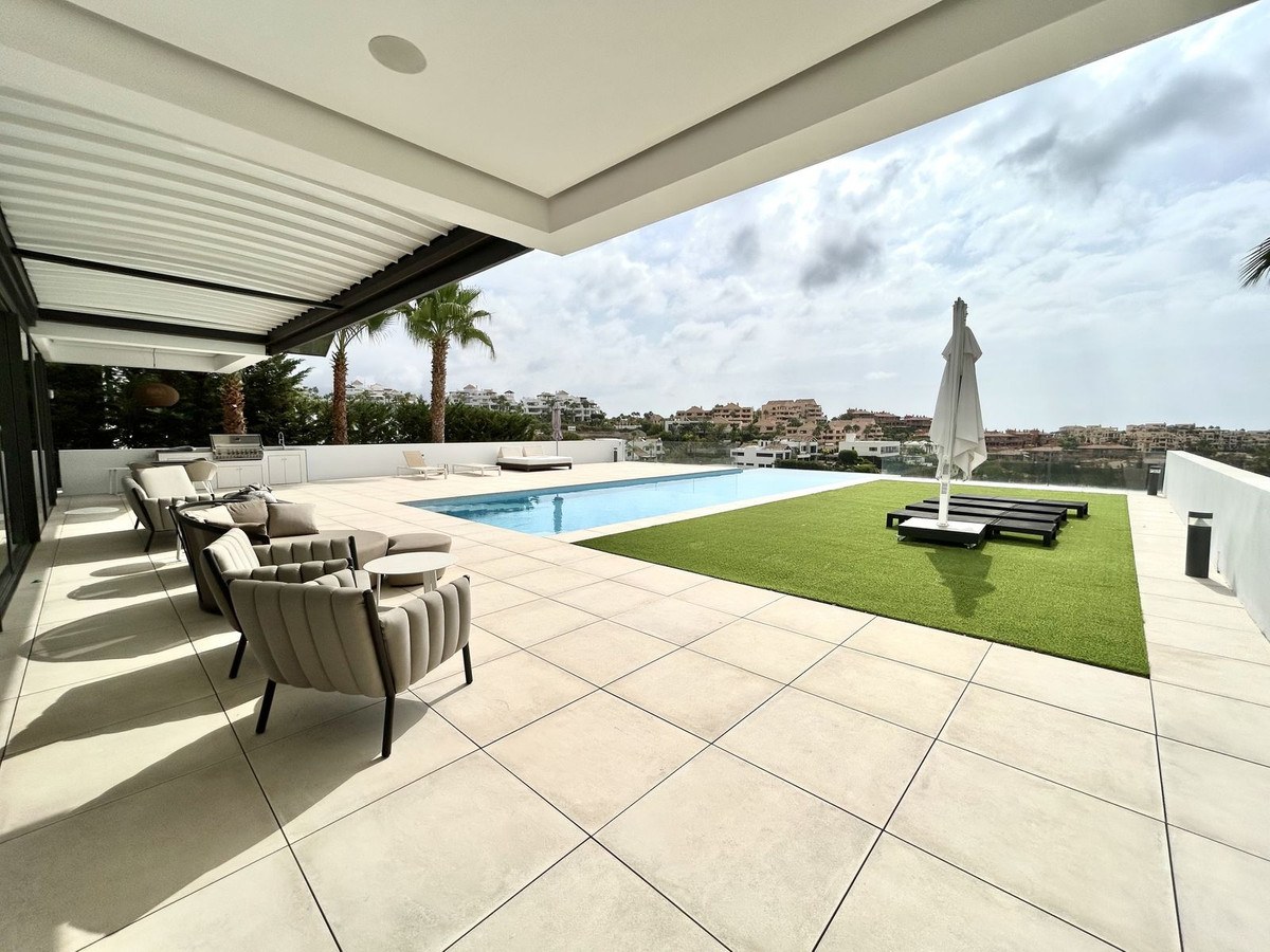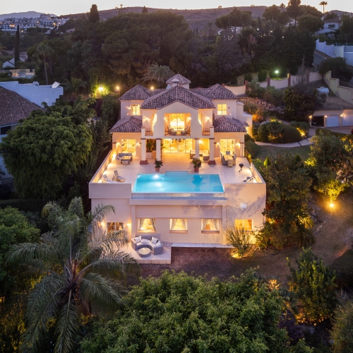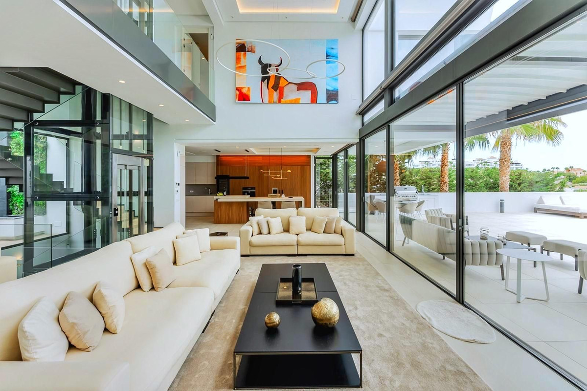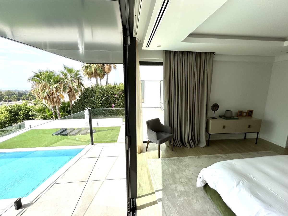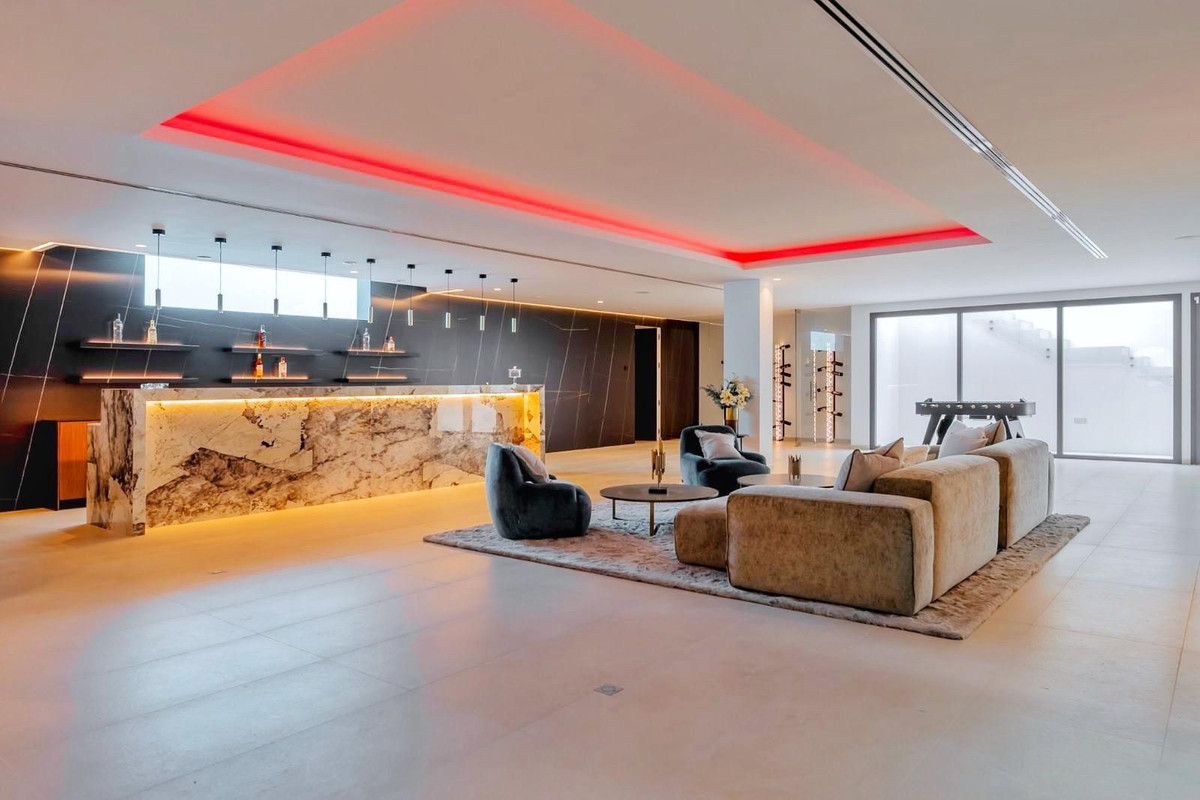 Nestled in a prime location, this exceptional property embodies modern luxury, harmoniously blending with the unique topography of its 1,439 m² plot. The villa's privileged position on the hillside offers breathtaking views of the lush golf courses in the valley, the majestic Andalusian mountains, and the sparkling Mediterranean Sea, extending all the way to the African coast and Gibraltar. Simply stunning!