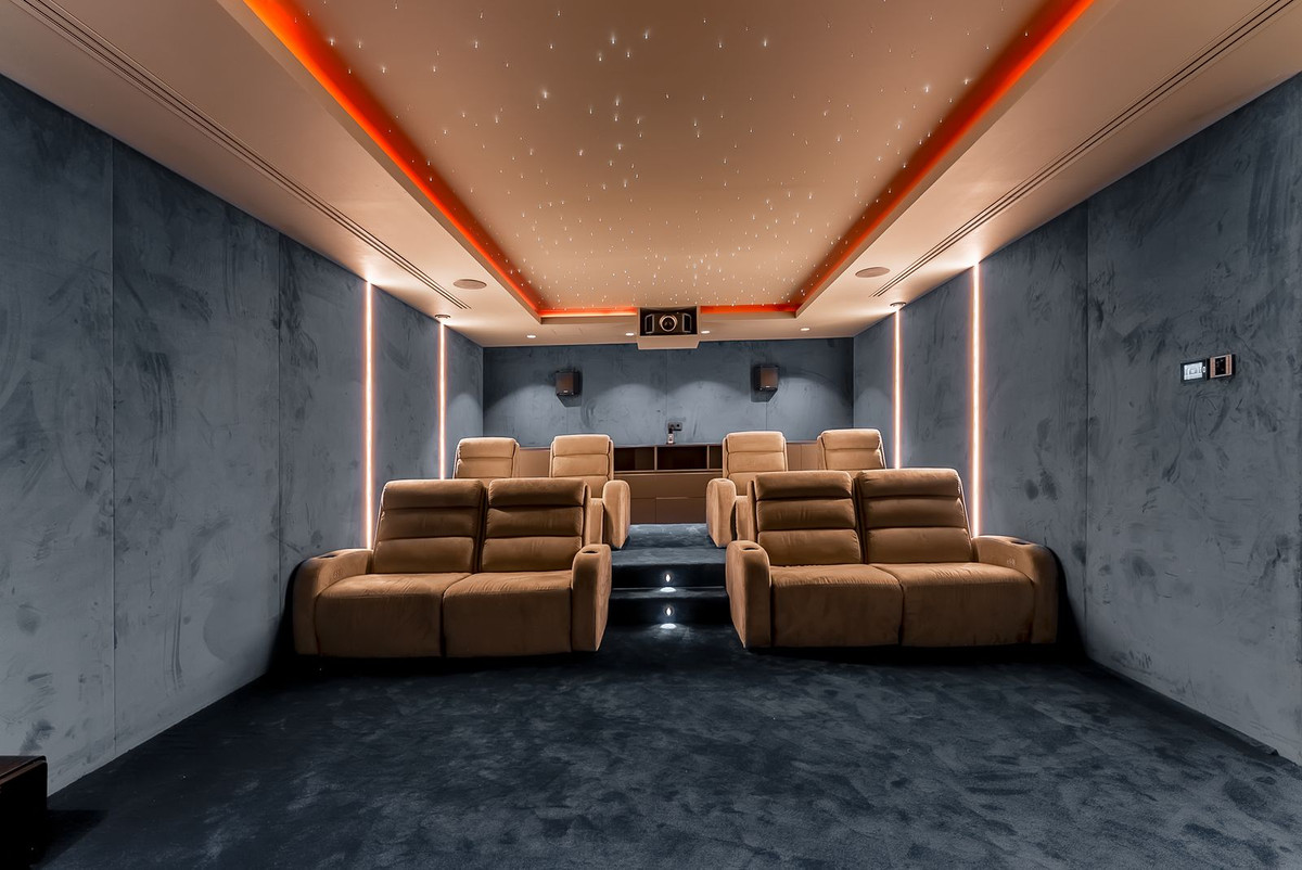 For leisure and relaxation, the property offers a professional gym, a custom-made cinema, and a full bar equipped with all the essentials, including an ice maker, dishwasher, oven, and sink. The outdoor spaces are equally impressive, with a full outdoor kitchen and island, an infinity pool that seems to merge with the sky and sea, and a 668 m² terrace where you can watch the famous Mediterranean sunset.