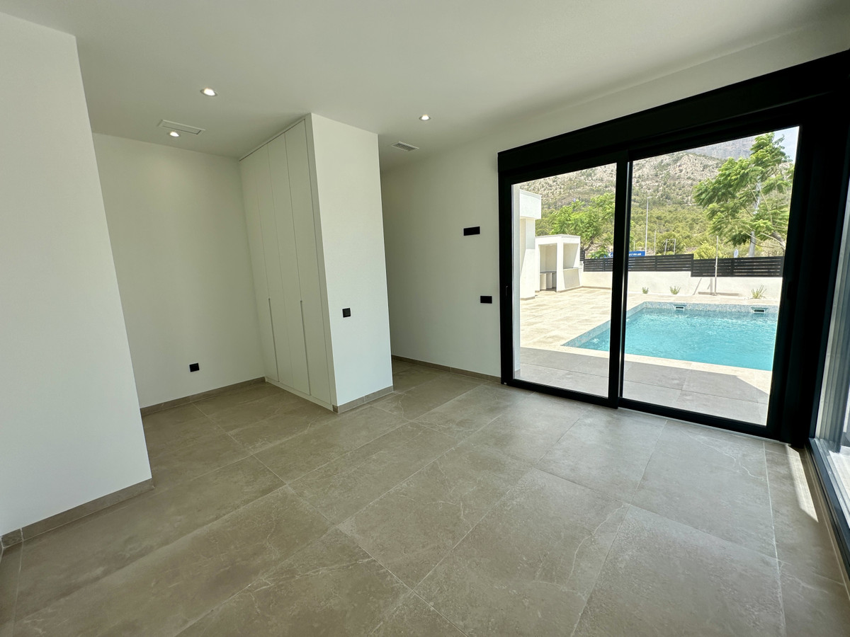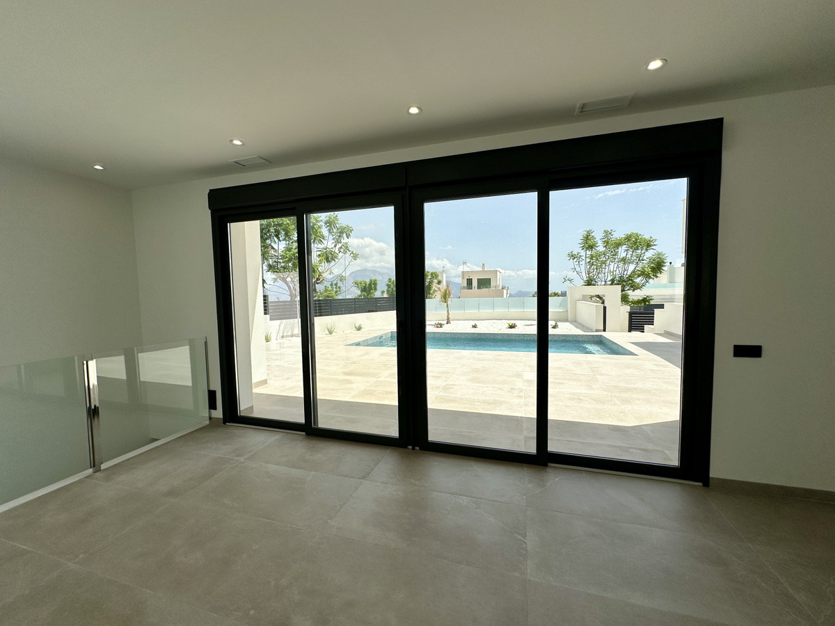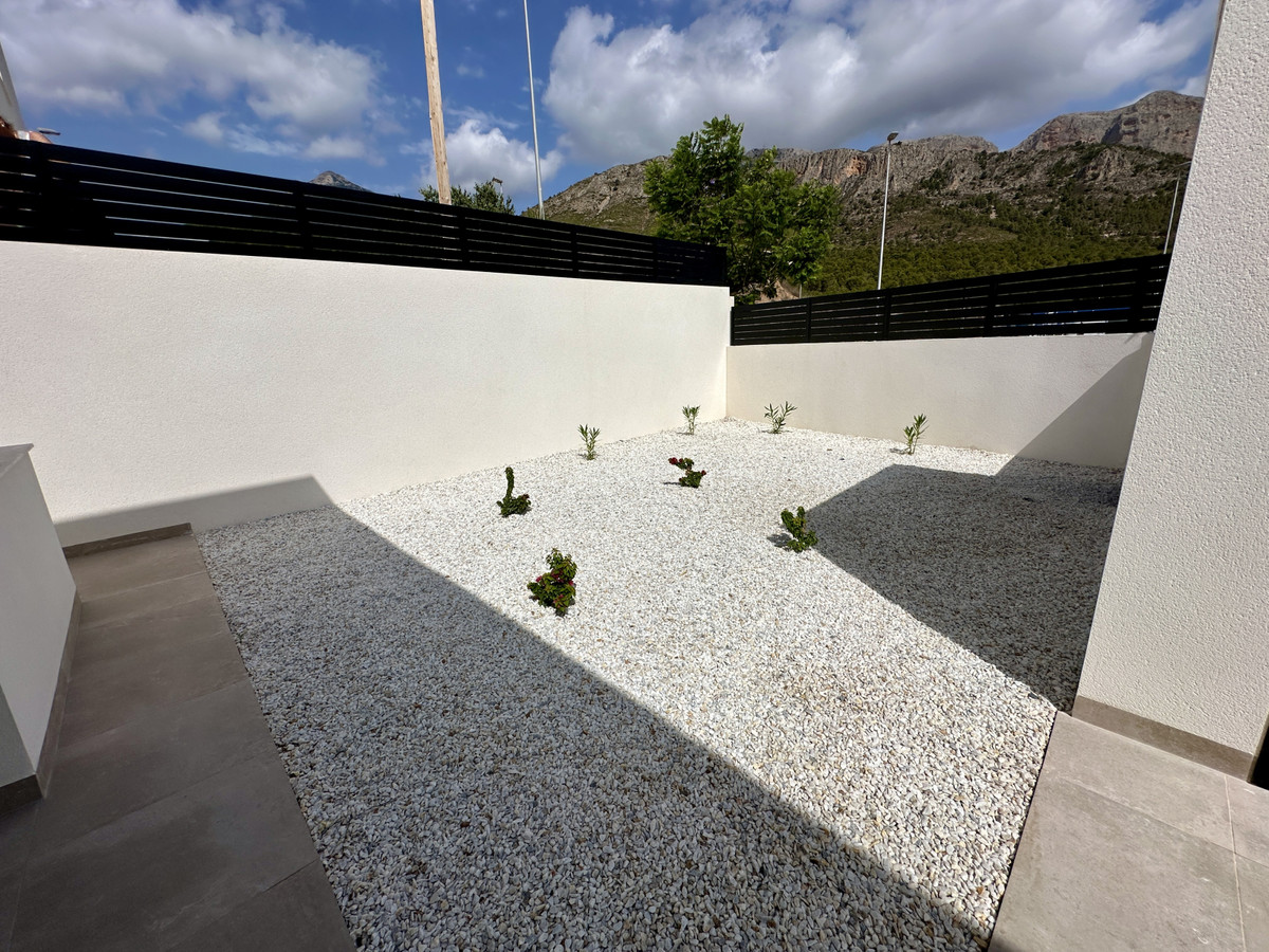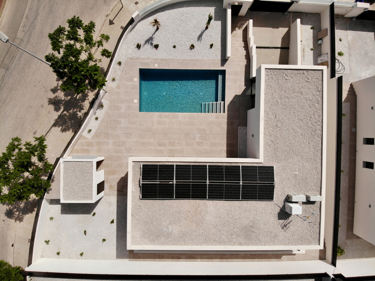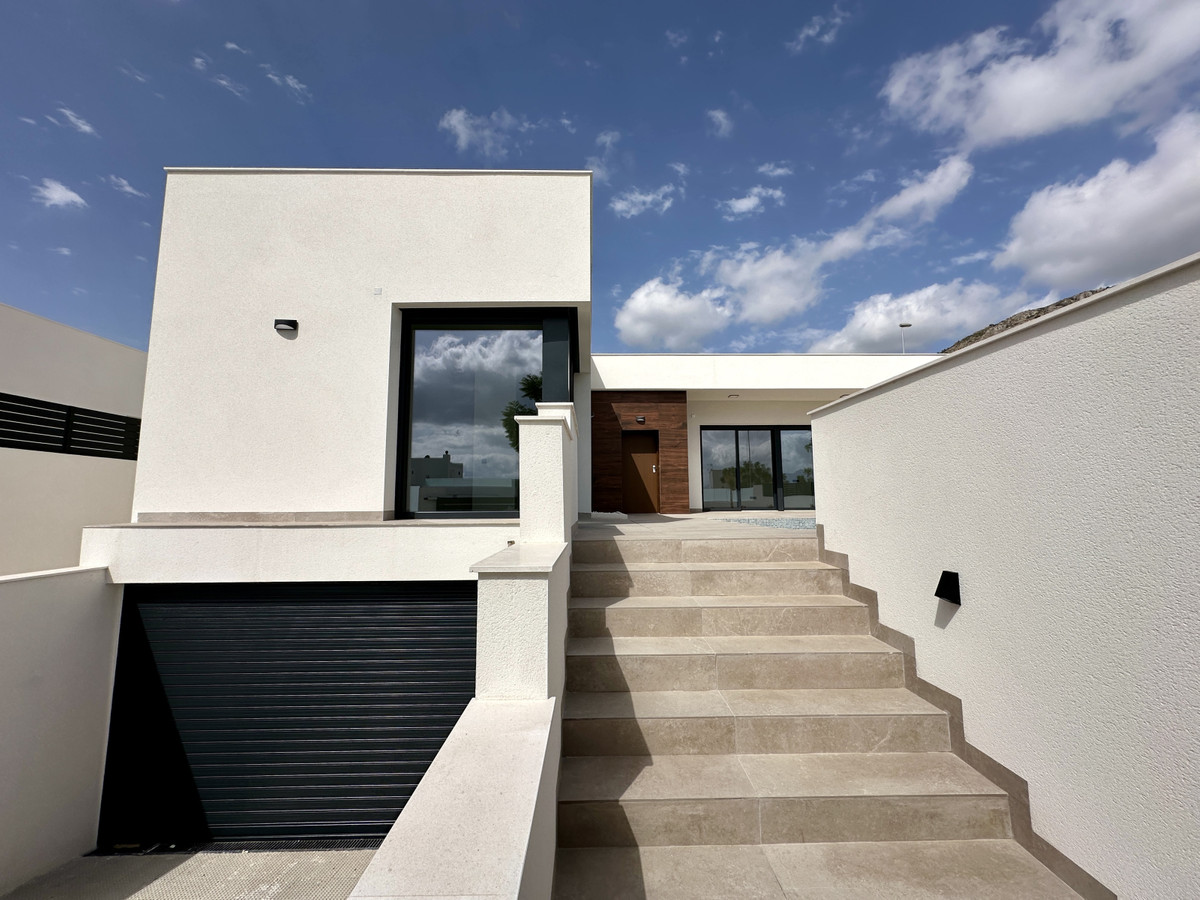 A single-family house distributed on ground floor and basement, with a total size of 220 square meters, with 430 square meters corner plot, located in "La Alberca" neighbourhood, in Polop de la Marina. Its "L" design allows a great use of sunny hours and the fantastic Mediterranean climate, providing light in all rooms of the house and lovely views to the mountains.