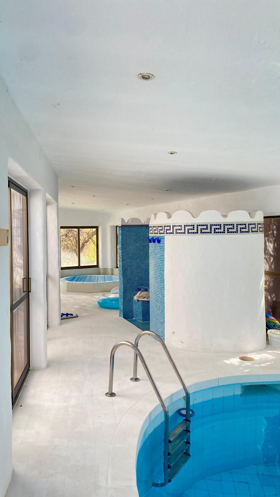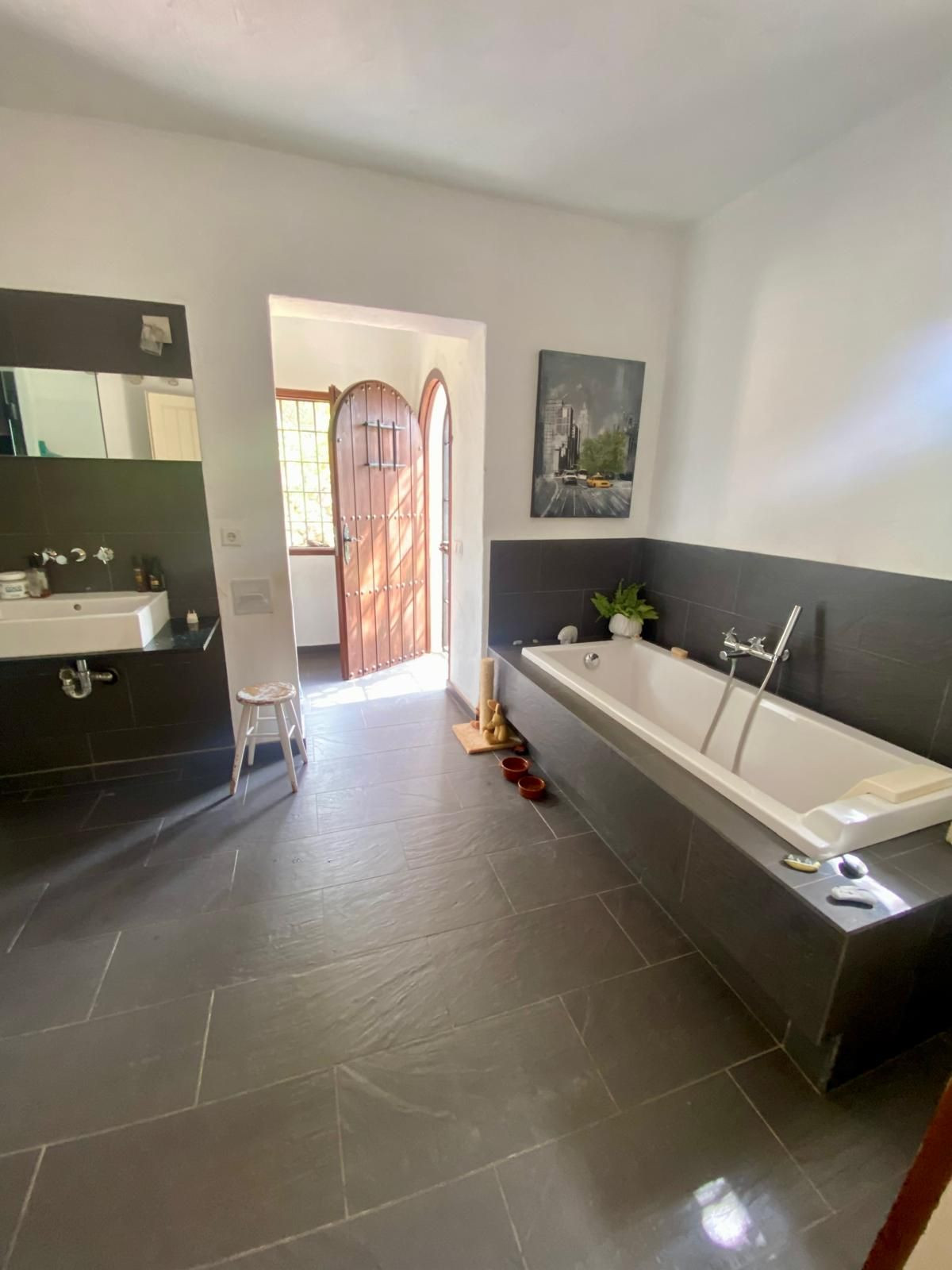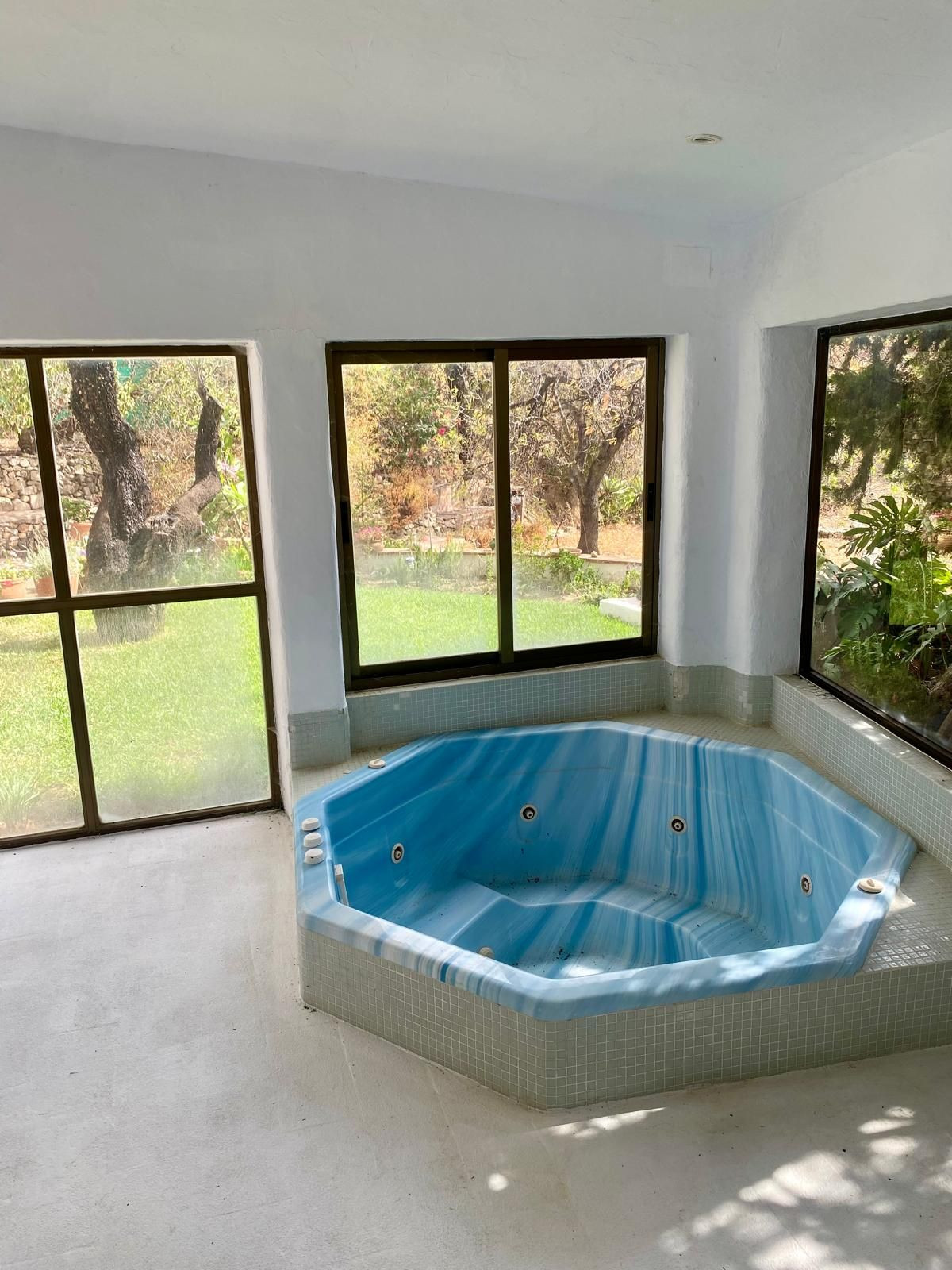 There are another 2 bedrooms in the guest house which also has another bathroom. The finca also has central heating in most of the rooms, when needed. There are also solar panels on the roof of the indoor pool area. The indoor pool can be enjoyed during the warmer months with windows that open from all sides to enjoy the fabulous views and there is also a shower and a jacuzzi enjoy. There is plenty of space to also use this area as a gym.