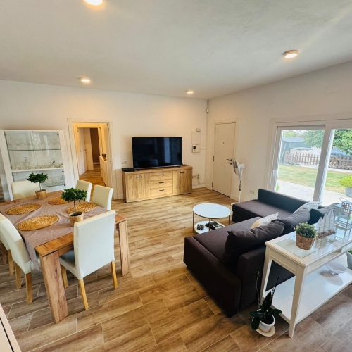 This traditional feel finca is on one level and has a cosy rustic but modern feel with vaulted and beamed ceilings in many of the rooms, which keep the house cool in the summer months. The large living/dining area is light and fresh in the summer and during those occasional cooler evenings during the winter months you can enjoy the open fire as well. It´s a well balanced mix of a cosy rustic feel yet light with modern touches in the bathrooms and a bright kitchen which connects to the living area. The finca faces east south and west with great views to enjoy from every window.