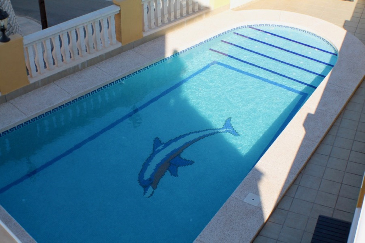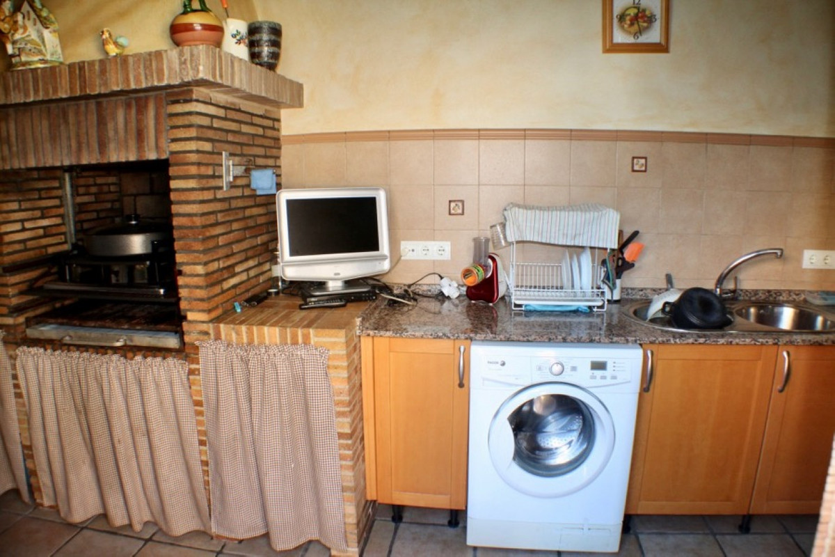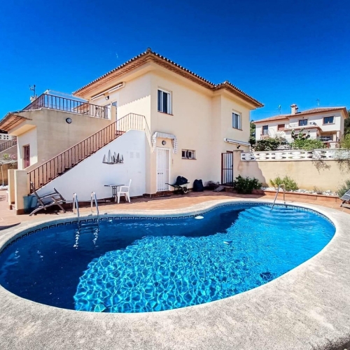 Detached villa with large living room, four bedrooms, kitchen with Gallery, terrace 20 m2, three bathrooms, kitchen extra in the plot with barbecue, swimming pool, garage for two cars, gym, storage, heating throughout the House, diesel oil boiler, chalet is sold furnished. In very quiet and safe area close to all amenities such as: Pharmacy, supermarkets, gas stations, five minutes by car to Benidorm, 40 minutes from Alicante Airport. For more information or to visit contact us.~