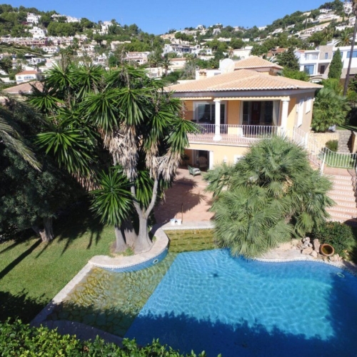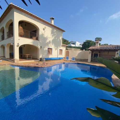 Luxury Villa in Benissa area, 559 m. of surface, 1132 m. plot area, 4 double bedrooms, 5 bathrooms, semi-new property, equipped kitchen, southeast orientation, ceramic.~Extras: air conditioning. central, air conditioning, fitted wardrobes, balcony, barbecue, heating, central heating, fireplace, softener, gallery, double garage, garden, bright, furniture, own pool, armored door, automatic irrigation, high ceilings, terrace, storage room, garage included , parking included~