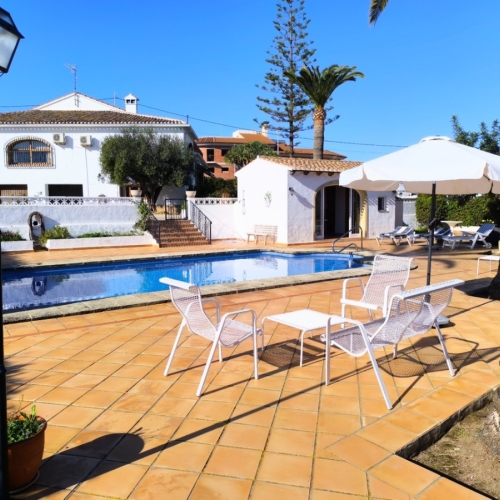 This villa is located in the quiet urbanisation Cap Marti just 2 km from the beach. The property is situated on a plot of 1400 m2 and is spread over 3 floors. The villa consists of a large naya, a spacious living-dining room with lots of light, a fully equipped kitchen, 4 double bedrooms and 3 bathrooms. Moreover, on the ground floor there is another guest house with a separate entrance. Here we find another living-dining room, a kitchen, a bedroom and a bathroom. There are sea views from the naya and from the dining room. In addition, there is also a garage, a barbecue, several terraces, a swimming pool and a garden. The villa also has a rental licence.