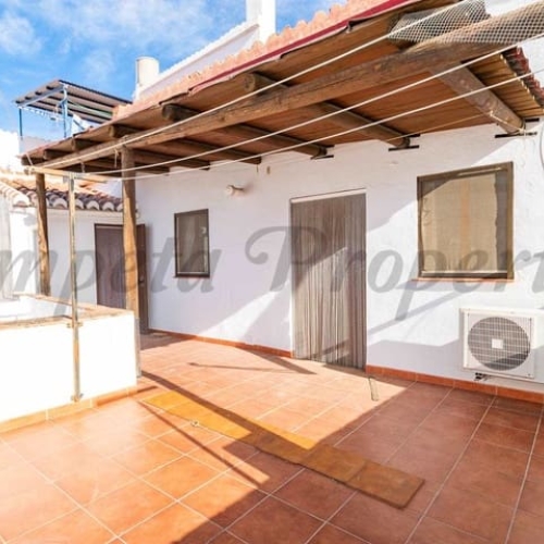 This beautiful, authentic village house was built in 1985. It has always been lovingly treated and is therefore in perfect condition to move in immediately. The house is located in a quiet street in the center of the charming village of Gata de Gorgos. One enters the house in a spacious hall with on the left a staircase leading to the upper floor and on the right a dining room and a lounge. From the lounge we enter a corridor with on the right a kitchen with access to a small patio and at the end a bathroom. From the corridor, through a door we can also return immediately to the entrance hall, from here we take the stairs upstairs. Here we find a large, luxurious bathroom, two double bedrooms and a single bedroom. In addition, there is an extra room from where a staircase leaves to a storage room and the roof terrace. From the roof terrace there is also a view of Montgó and the nature reserve behind Gata de Gorgos. Gata de Gorgos is synonymous with crafts, gastronomy, walks and many other charms to be discovered.