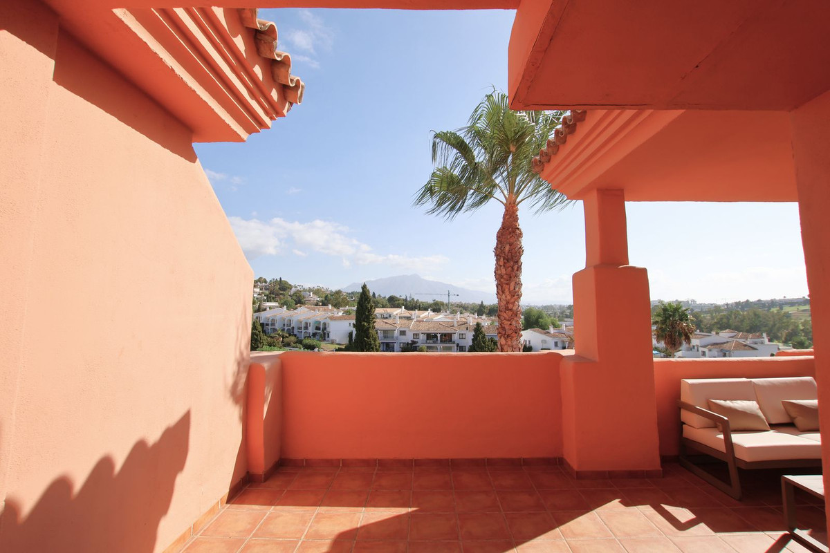 Surrounded by extraordinary large terraces on the south, east and west sides on both levels; and with access from the living room, master bedroom, second bedroom and top of the stairs; providing ample outdoor space and panoramic views of the La Concha mountains and the renowned El Paraíso Golf Course; this duplex penthouse boasts a fully fitted modern kitchen, a spacious living room, and elegant guest bedrooms along with a guest bathroom. The top floor is dedicated exclusively to the master bedroom, complete with an ensuite bathroom and two terraces.