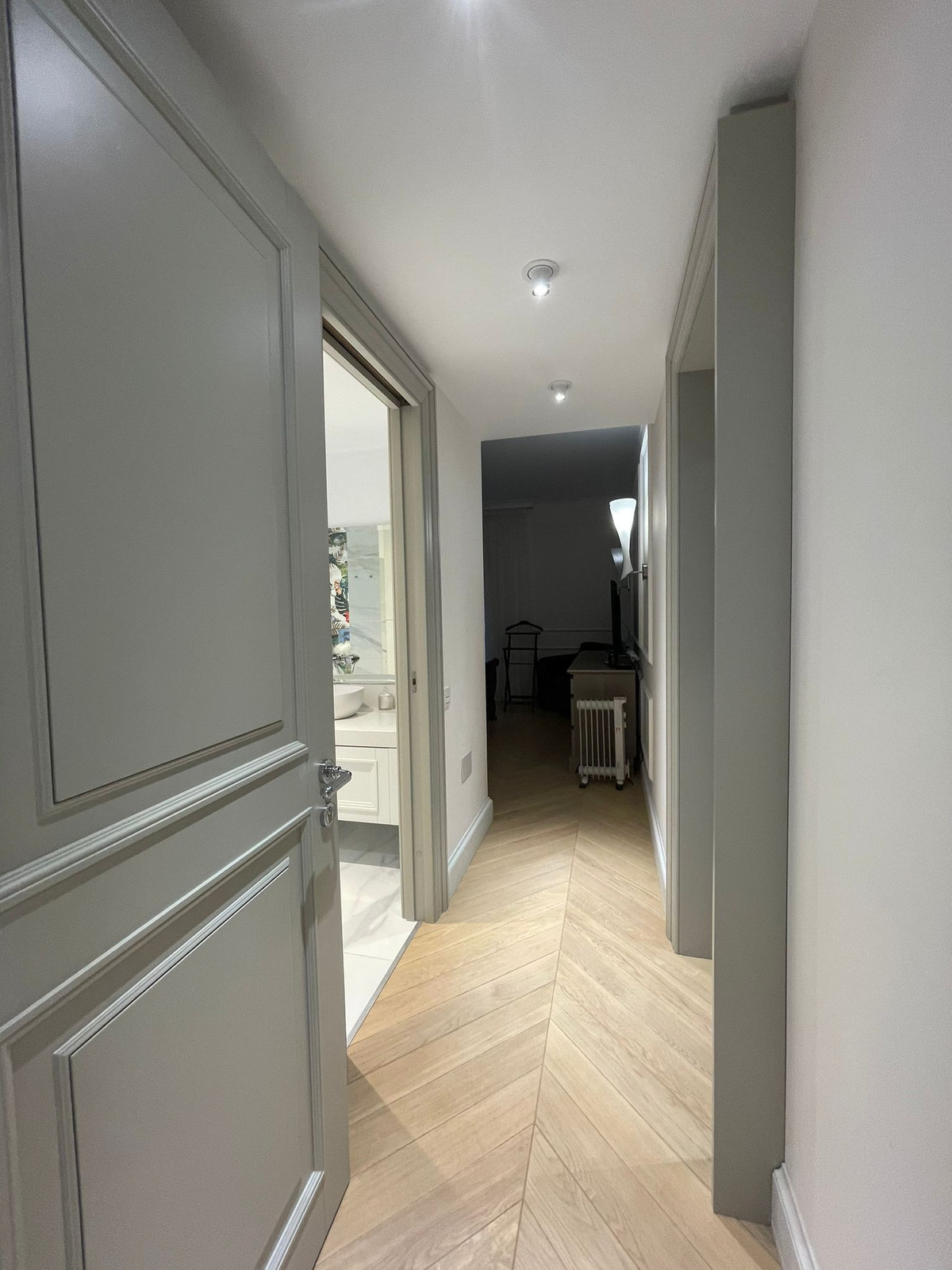 Step into the spacious living room, where natural light floods the space, creating an inviting atmosphere for relaxation and entertaining. The apartment features underfloor heating, ensuring warmth during cooler months, while the air conditioning provides a refreshing escape during the warmer days.