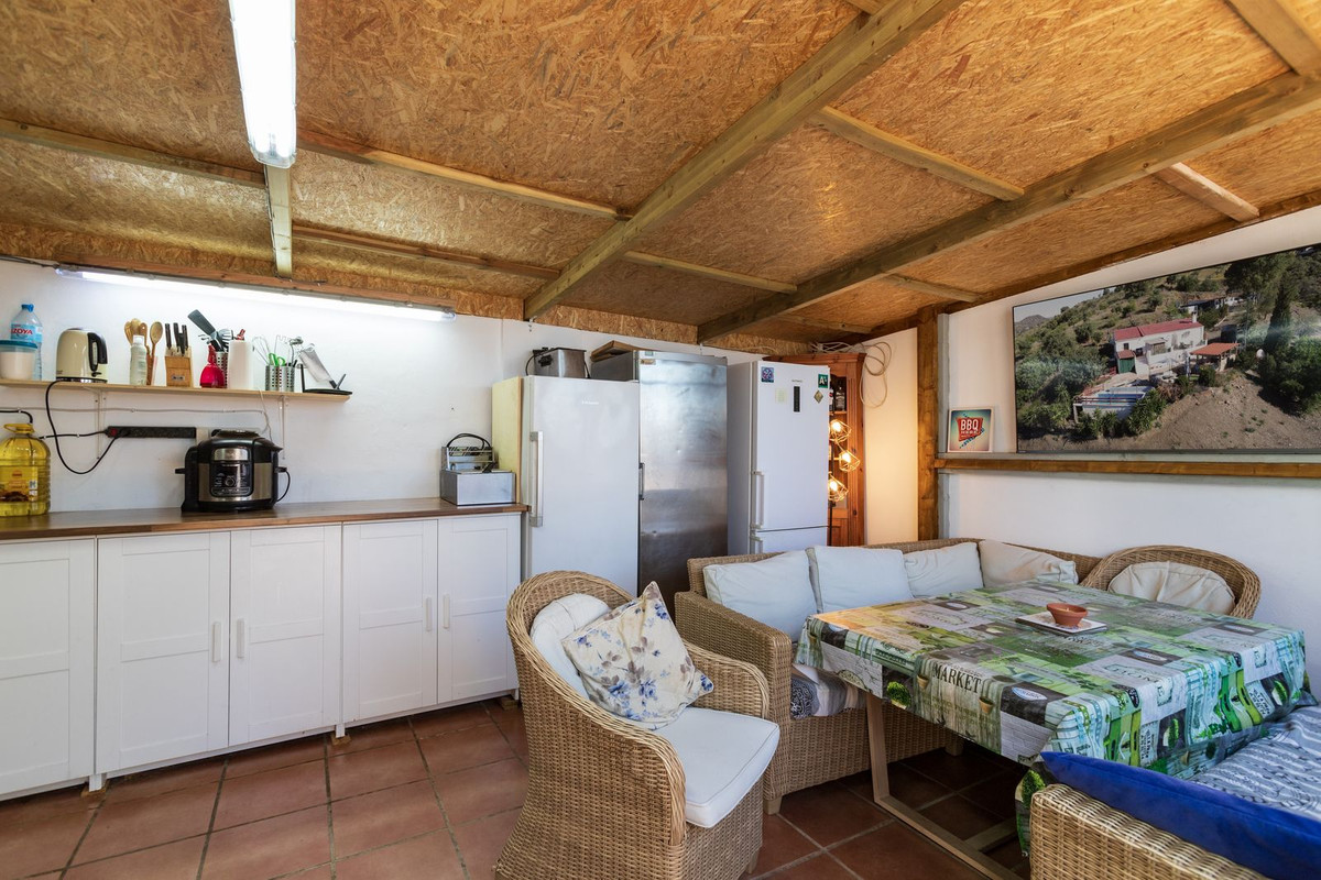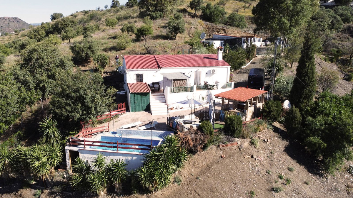 Set in the rugged hills above the city of Málaga, this charming country property comprises two separate dwellings in a dramatic, peaceful setting. The main house is a large, single-storey traditional finca, much of which likely dates to the early 20th century, with a registered reform in 1996. Inside you'll find three bedrooms, a kitchen, separate living room, family kitchen, and bathroom, along with a laundry and various storerooms.