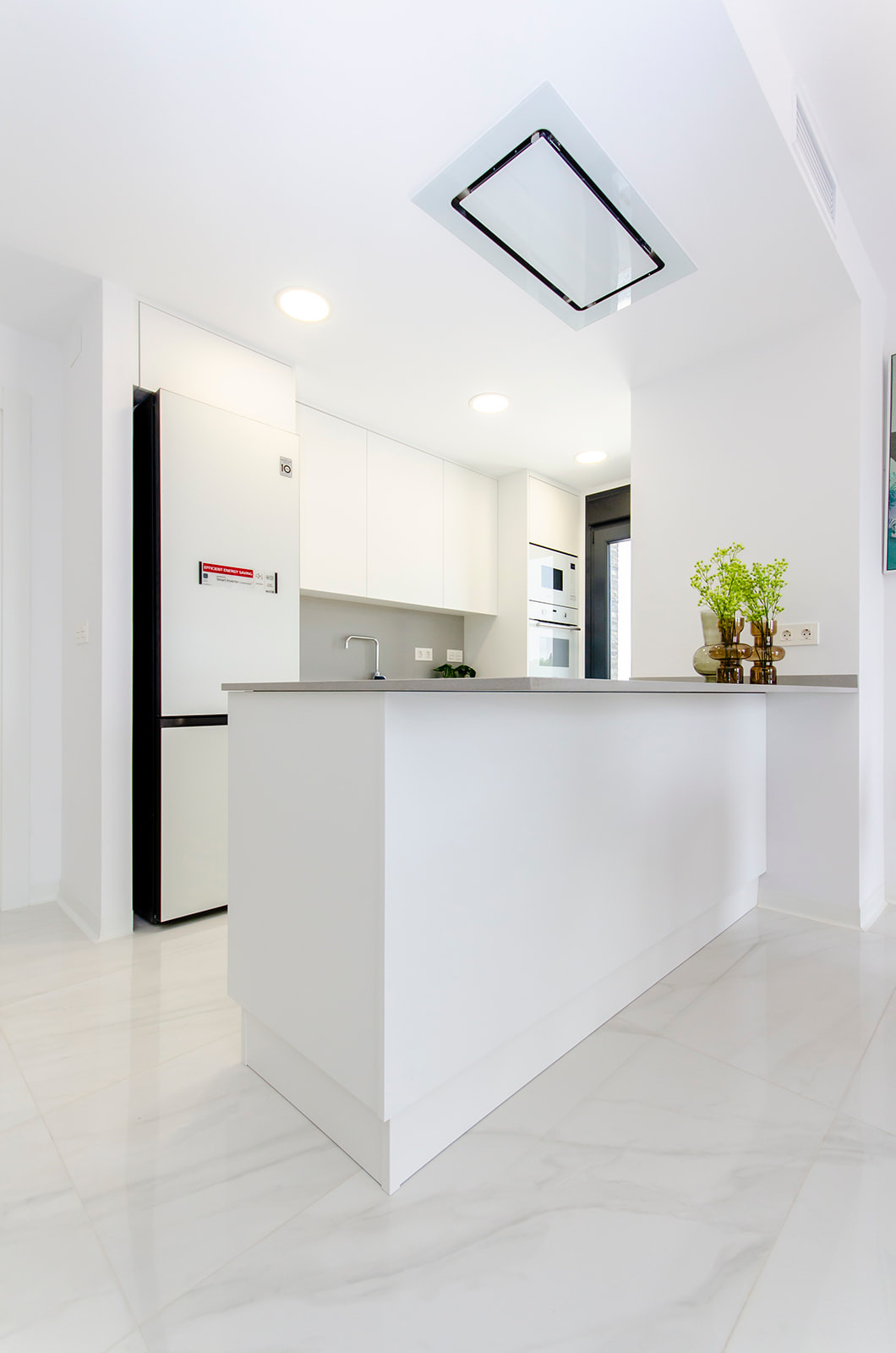 Standardkvaliteterna och finishen i denna nybyggnation är utmärkta: Alla hem inkluderar automatiserade persienner, golvvärme i alla badrum, förinstallation för kanalkylning, hydromassagepelare i huvudbadrum och energicertifikat klass A.