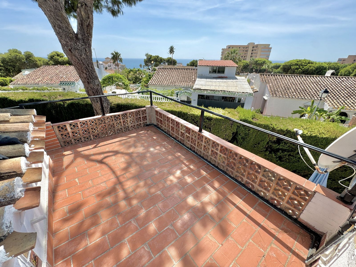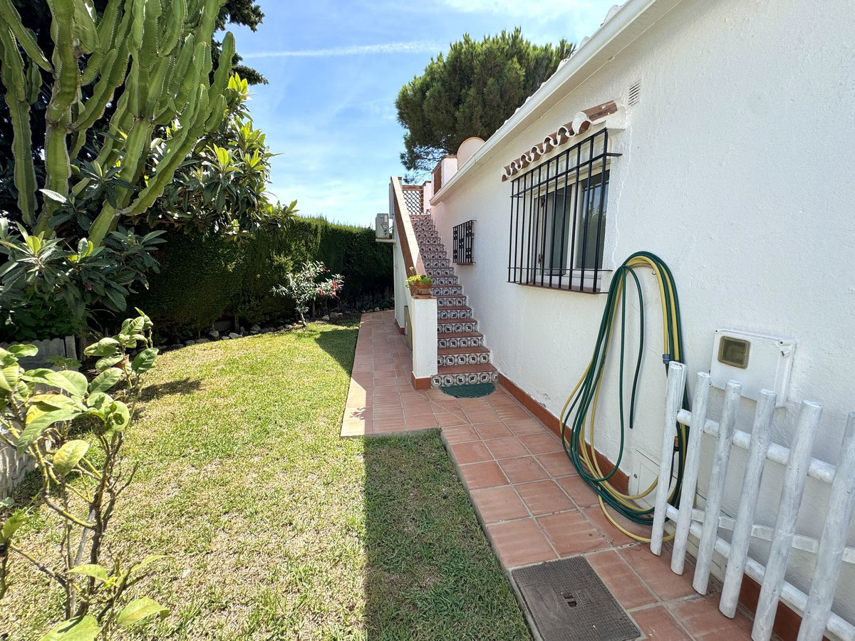 LÄGE, LÄGE, Fristående villa med 4 bäddar (en plan) på mycket privat hörntomt vid Lower Calahonda endast (320 m) 7 min promenad till stranden & mindre till affärer, barer & restauranger etc. Havsutsikt, privat pool & garage.