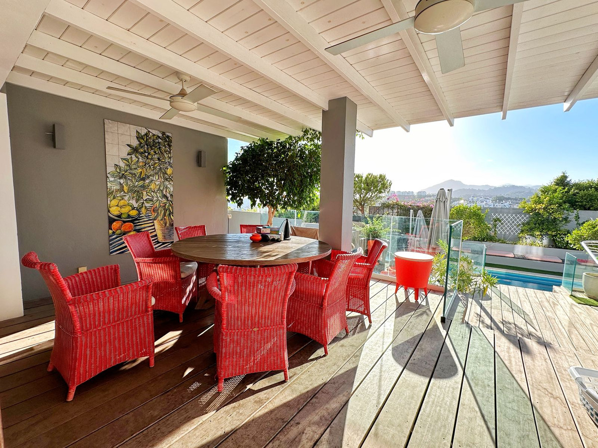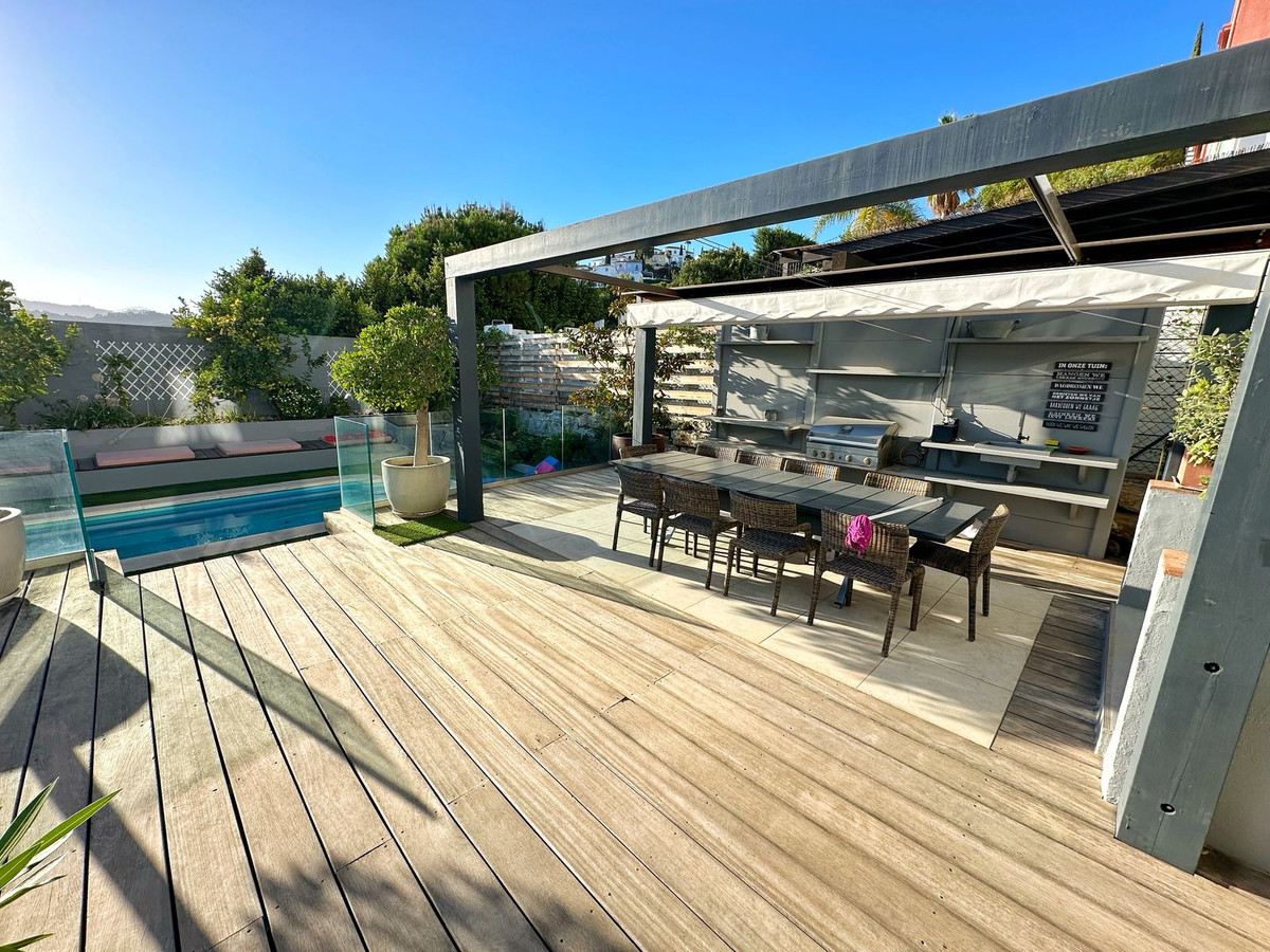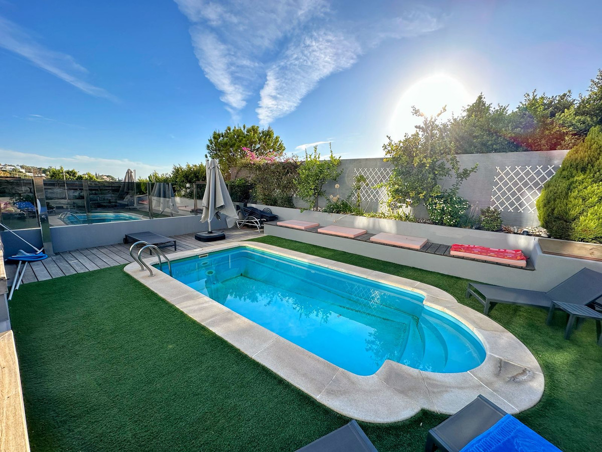 Welcome to this fantastic home located in the prime area of La Heredia, offering spectacular west-facing views of the sea, mountains, and golf course. This property stands out as one of the few in the urbanization with a private garden and swimming pool, perfect for enjoying the beautiful outdoors. The expansive outdoor space features a fully equipped kitchen, barbecue area, and dedicated dining and chill-out zones for entertaining and relaxation.