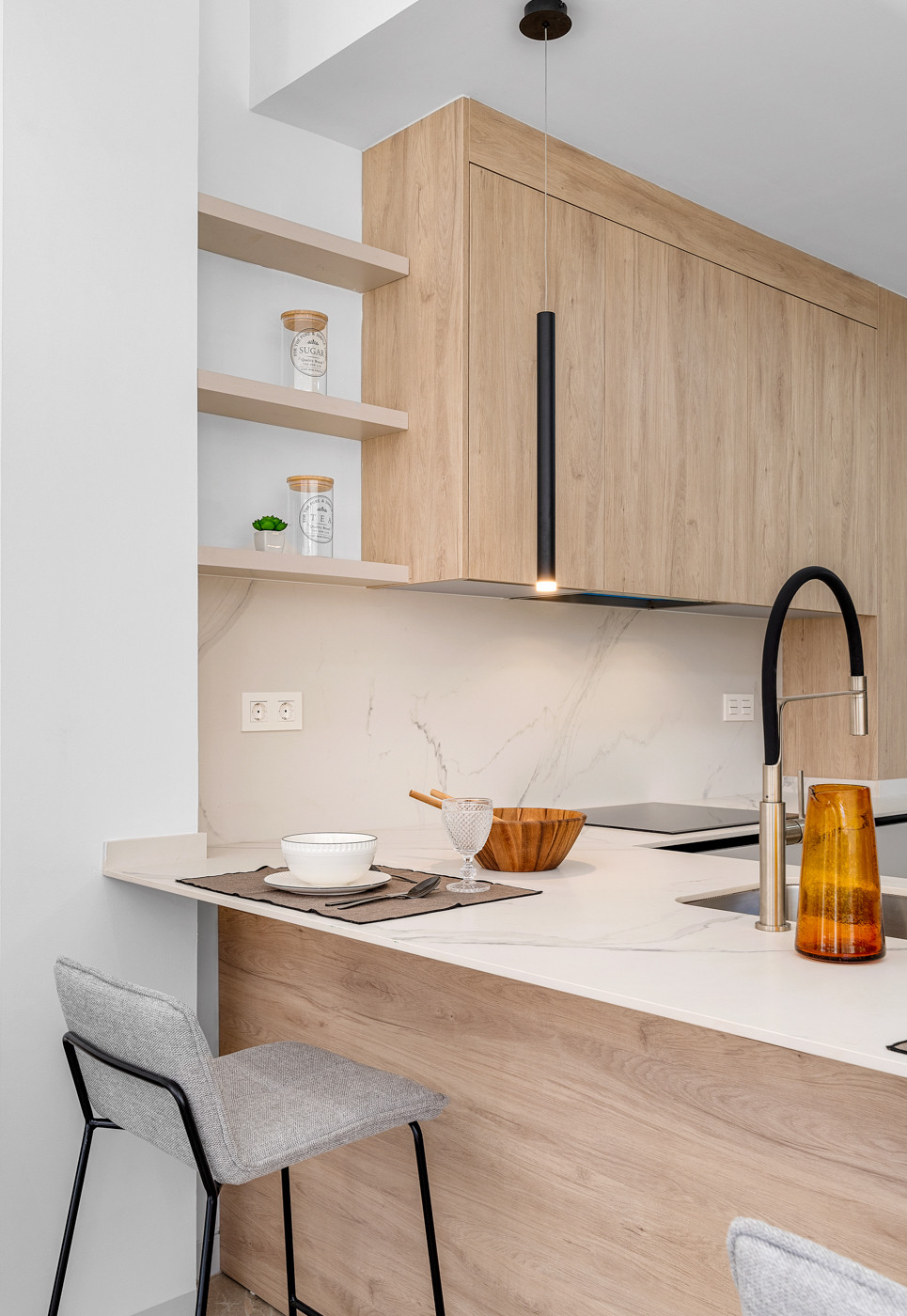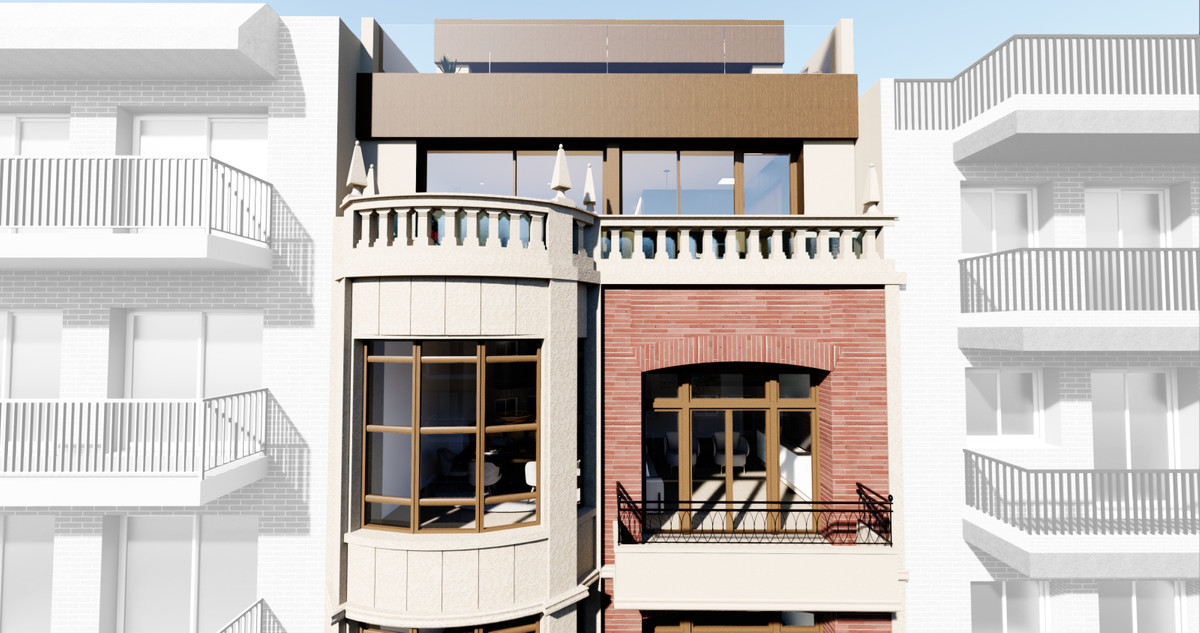 This development consists of 4 exclusive apartments with 3 and 4 bedrooms and a commercial space that combine the elegance of a stately building with a rationalist-style façade and high ceilings in the apartments, along with a contemporary renovation that offers a modern design, prioritizing the quality, efficiency, and functionality of each apartment while adapting the pre-existing heritage to current trends and needs. The building is southeast-facing and has only one apartment per floor, as well as a duplex penthouse.