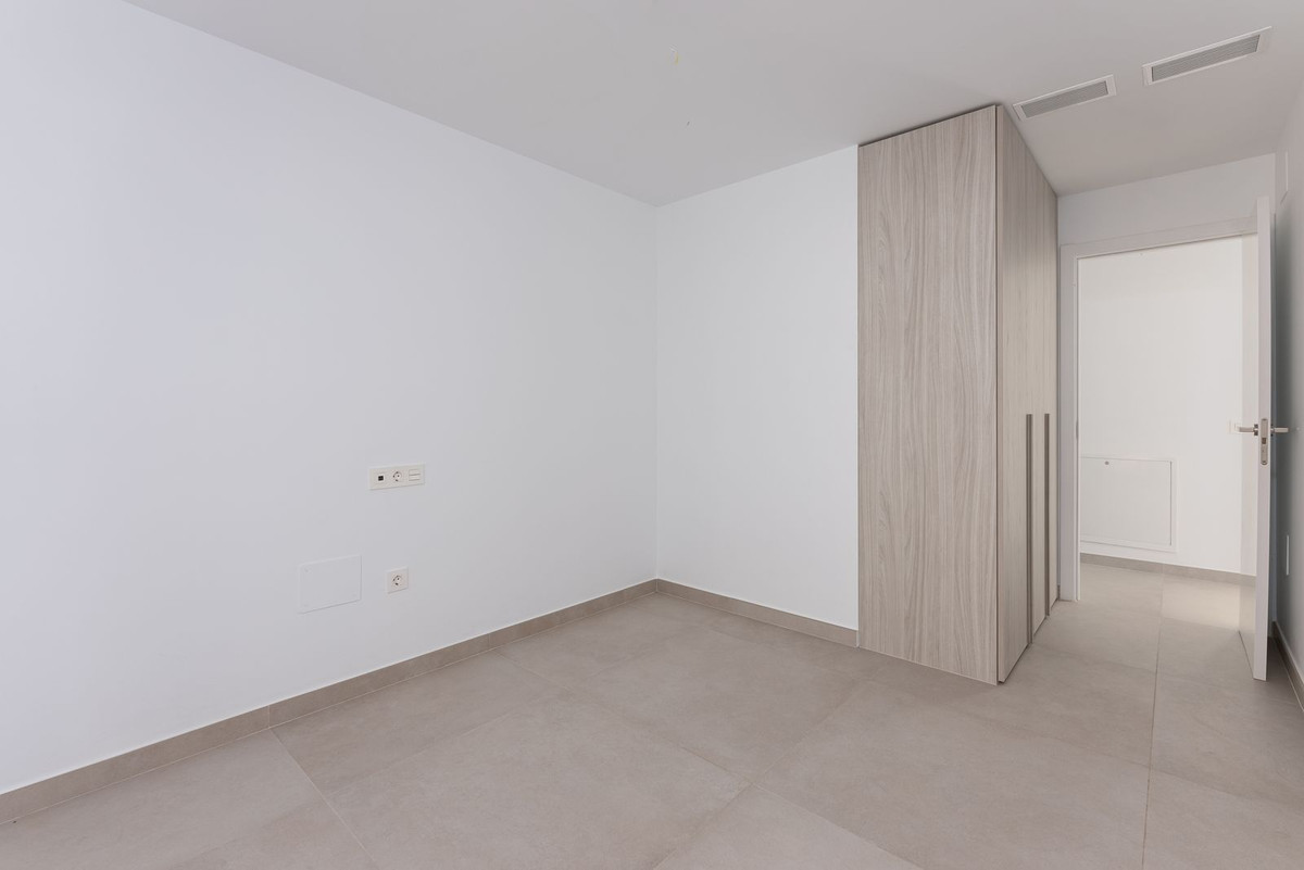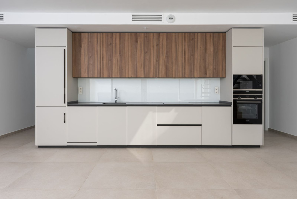 Brand new south facing penthouse duplex, located in an exclusive urbanization. The property consists of hall, 2 bedrooms with built-in wardrobes and electric blinds, guest bathroom, open plan kitchen fully furnished and equipped with electricial appliances from Siemens. Spacious living-dining room that leads out to a terrace of 34m2 with panoramic sea views, the Fuengirola Bay and of the Buddist Temple. On the top floor is located the main bedroom with walk-in closet and ensuite bathroom. The bedroom leads out to a terrace of 16m2 with panoramic sea views. Air conditioning hot and cold with Airzone, video intercom, domotic system, pre-installation alarm system. Includes two parking spaces and one storage room.