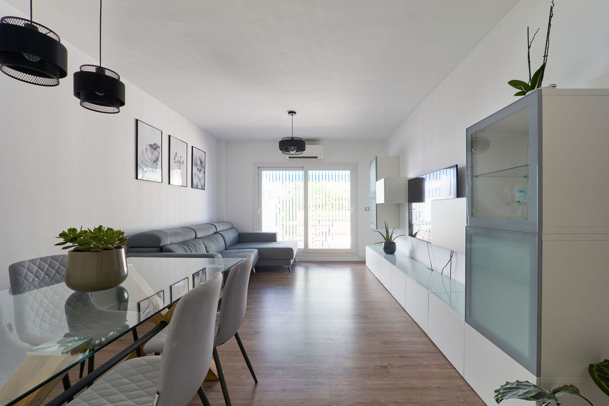Mysig modern lägenhet med 3 sovrum i den gated gated urbanisationen på första raden av havet. Urbanisationen har en swimmingpool för vuxna och barn, tennisbana. Bottenvåning med stor terrass och privat trädgård. Underjordisk parkering, förråd. Golv laminat, helt renoverat. Nära till all infrastruktur - affärer, hållplatser, restauranger, strand, centrum av Sabinillas