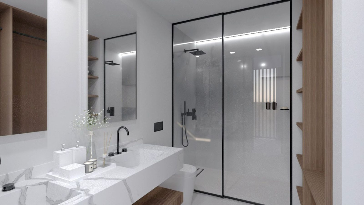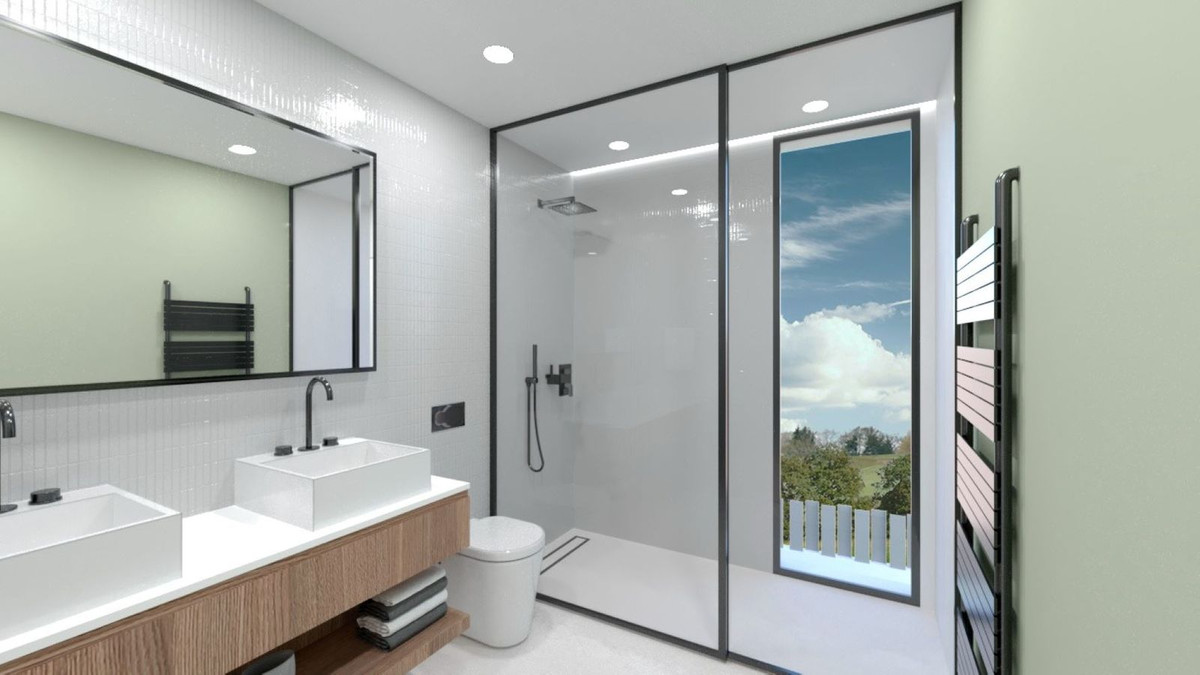 The first floor will have a master bedroom with a dressing room and a full en-suite bathroom. In addition, two double bedrooms and a full bathroom with a shower. All these rooms will have access to the outside terrace.