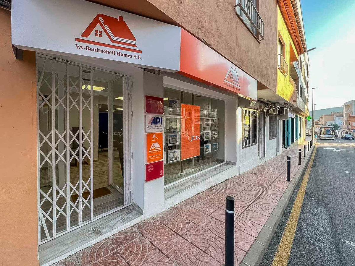 Commercial premises for sale in Benitachell. The property has an area of 80m2 and consists of a spacious office, copy room and WC. Currently the property is used as an estate agency with a large shop window and disabled access door. It has a recent opening permit and has been fully refurbished with new flooring, new painting, new electrical installation and integral network wiring with multiple connection points. The office is just a few metres from Benitachell's public car park and is located next to a pharmacy and a bank, ensuring good traffic flow. In addition, it is located at the crossroads connecting Benitachell with Moraira and Jávea which means that very many vehicles pass through every day.