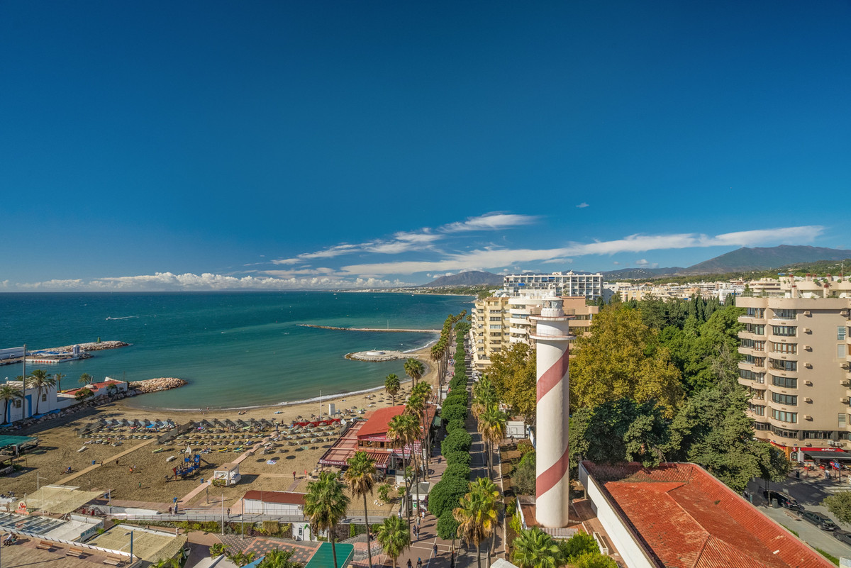 Unik strandlägenhet ligger hjärtat av Marbella, precis vid strandpromenaden framför Sport hamn Marbella.