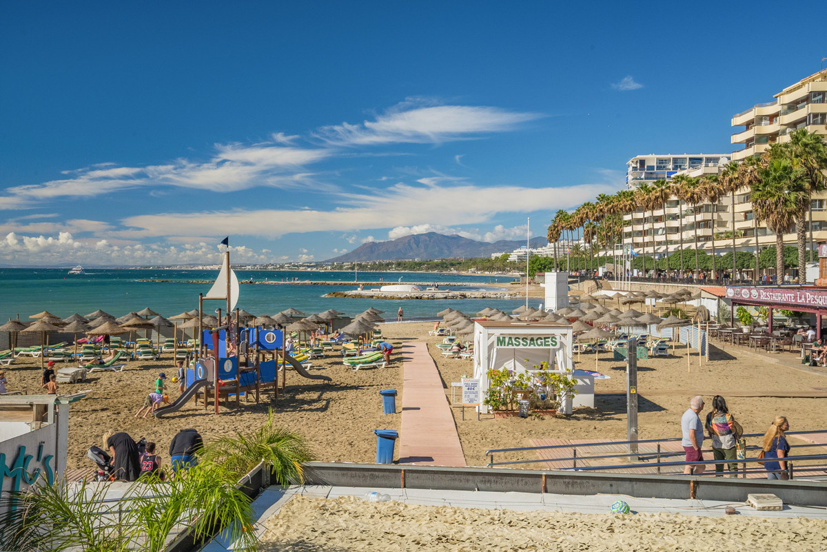 Vår unika strandfron lägenhet ligger i de mest populära områdena i Marbella stad, precis på strandpromenaden, bara en minut gångavstånd till alla bekvämligheter som restraunts, barer, stormarknader, bondgårdar och mer.