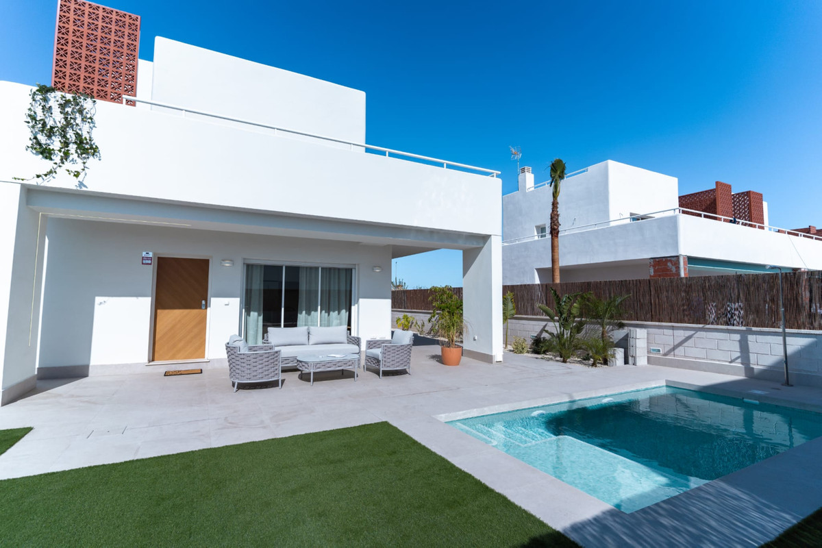 I dessa villor hittar du den bästa medelhavsstilen anpassad till modern design, med en perfekt kombination av elegans och komfort. Våra fristående villor har 3 sovrum och 3 badrum, alla med en-suite, vilket garanterar privatliv och komfort i varje hörn.