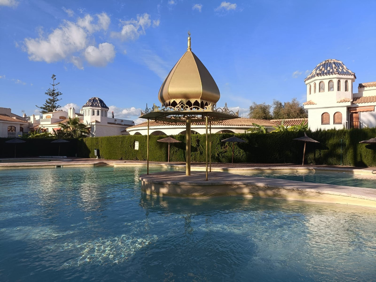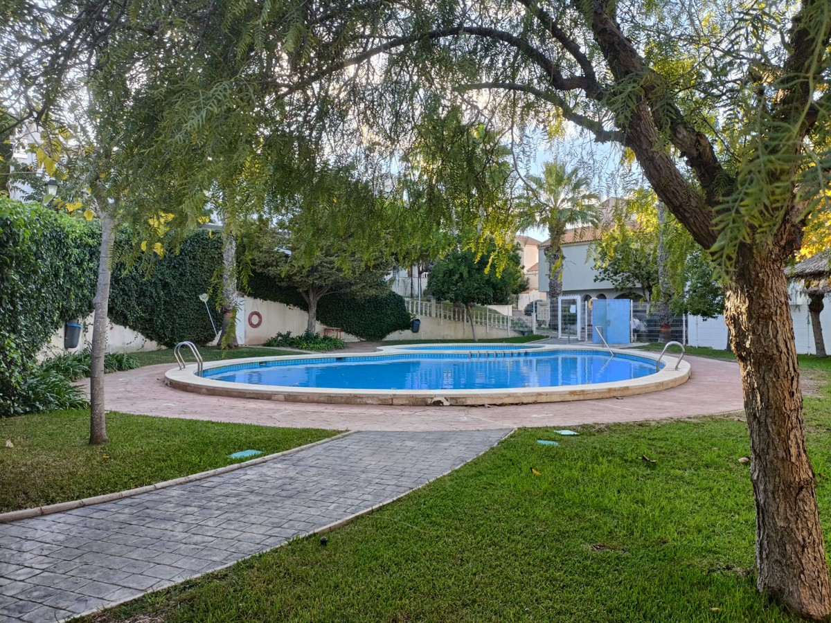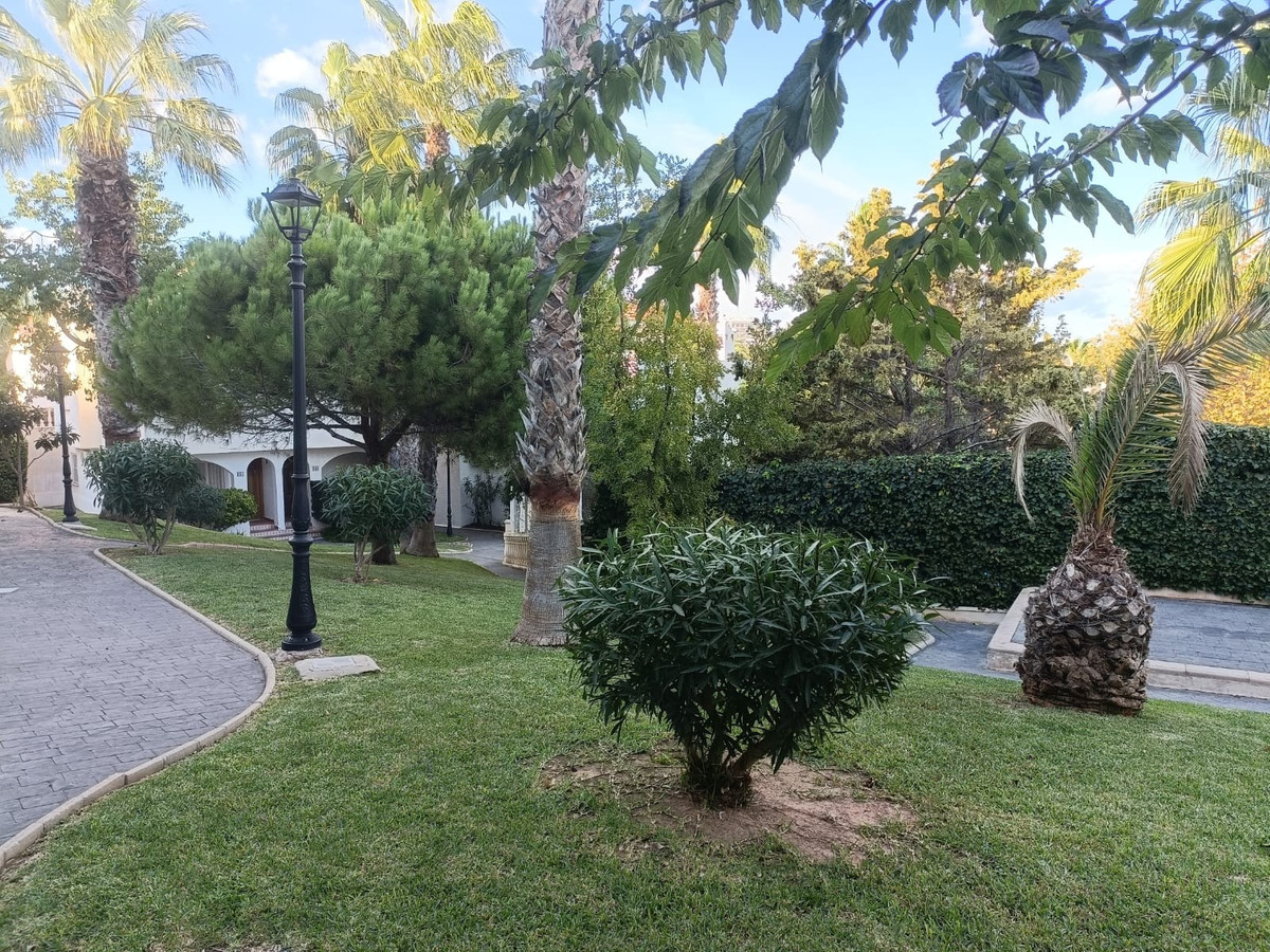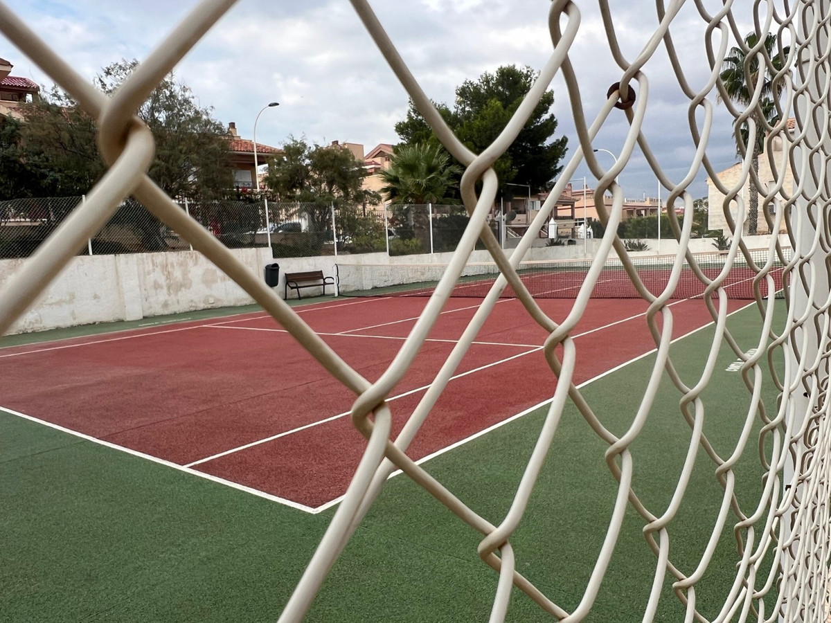 The home is built in a very quiet gated community , with fully landscaped gardens , 3 pools , a tennis court and a restaurant.