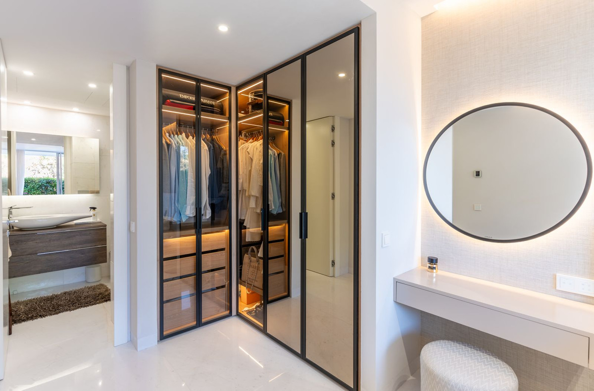 Kitchen is fully equipped with Gaggenau appliance with double fridge and freezer with ice maker, coffee maschine and warming drawer, ideal for preparing family meals in elegant space. The kitchen area is integrated with the living area. The floor-to-ceiling glass doors gives the bright and lead to the into a generous over 32 m2 terrace and private use garden. Here you can enjoy spectacular sea views. The apartment was designed with great attention to detail and the highest quality of finish, all rooms have LED lighting installed in the ceilings, in the living room there are additional LED floor strips with division into zones and dimmers in all rooms allowing to create a unique atmosphere in the evening.