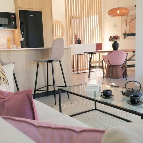 Bostaden har mer än 360 kvadratmeter byggd yta och är designad för att tilbyde den højeste komfort, design og funktionalitet. Den består af fire soveværelser, tre badeværelser, to parkeringspladser og et opbevaringsrum. De rummelige terrasser, den private tagterrasse og den individuelle swimmingpool giver dig mulighed for at nyde middelhavsklimaet i fuldstændig privatliv.