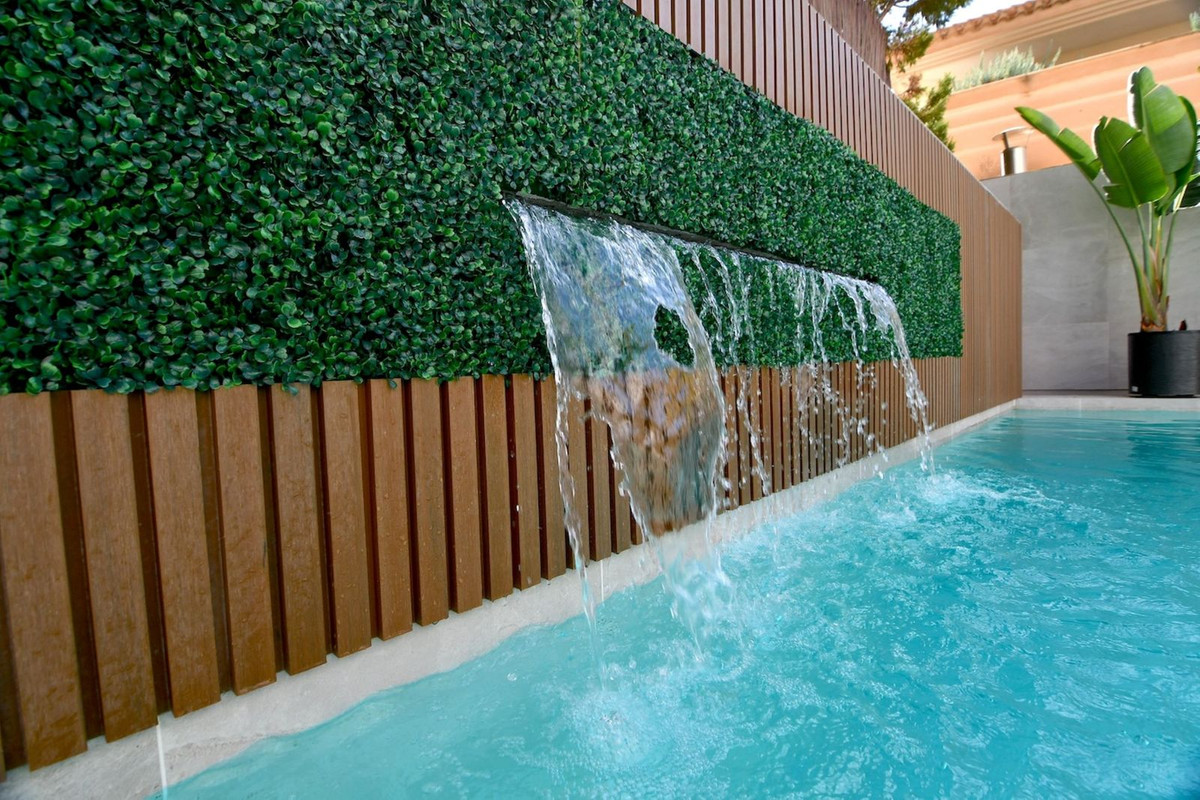 - Outdoor Oasis: Enjoy a stunning pool with a waterfall feature, complemented by natural grass in the front garden and composite decking for relaxation.