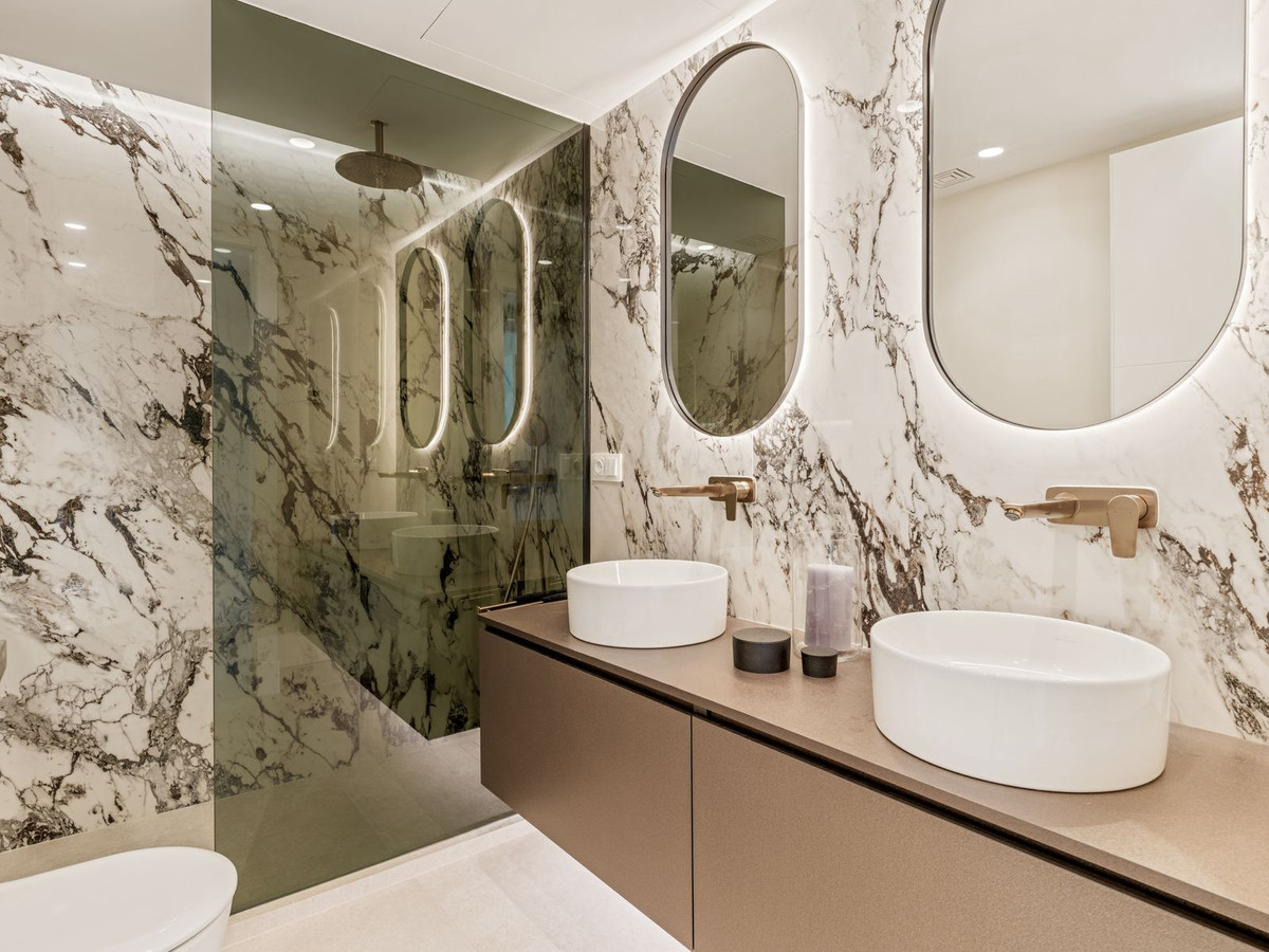 Detta eleganta hem erbjuder 154 m² boyta plus en 78 m² terrass med spektakulär utsikt över havet och bergen. Designen har en modern öppen planlösning, exklusiva ytor, lyxiga möbler och en takterrass som är perfekt för middagar, avkoppling och underhållning.