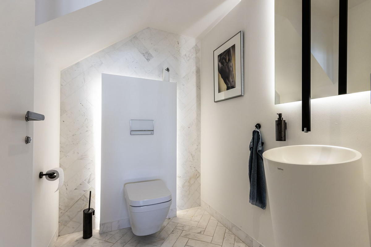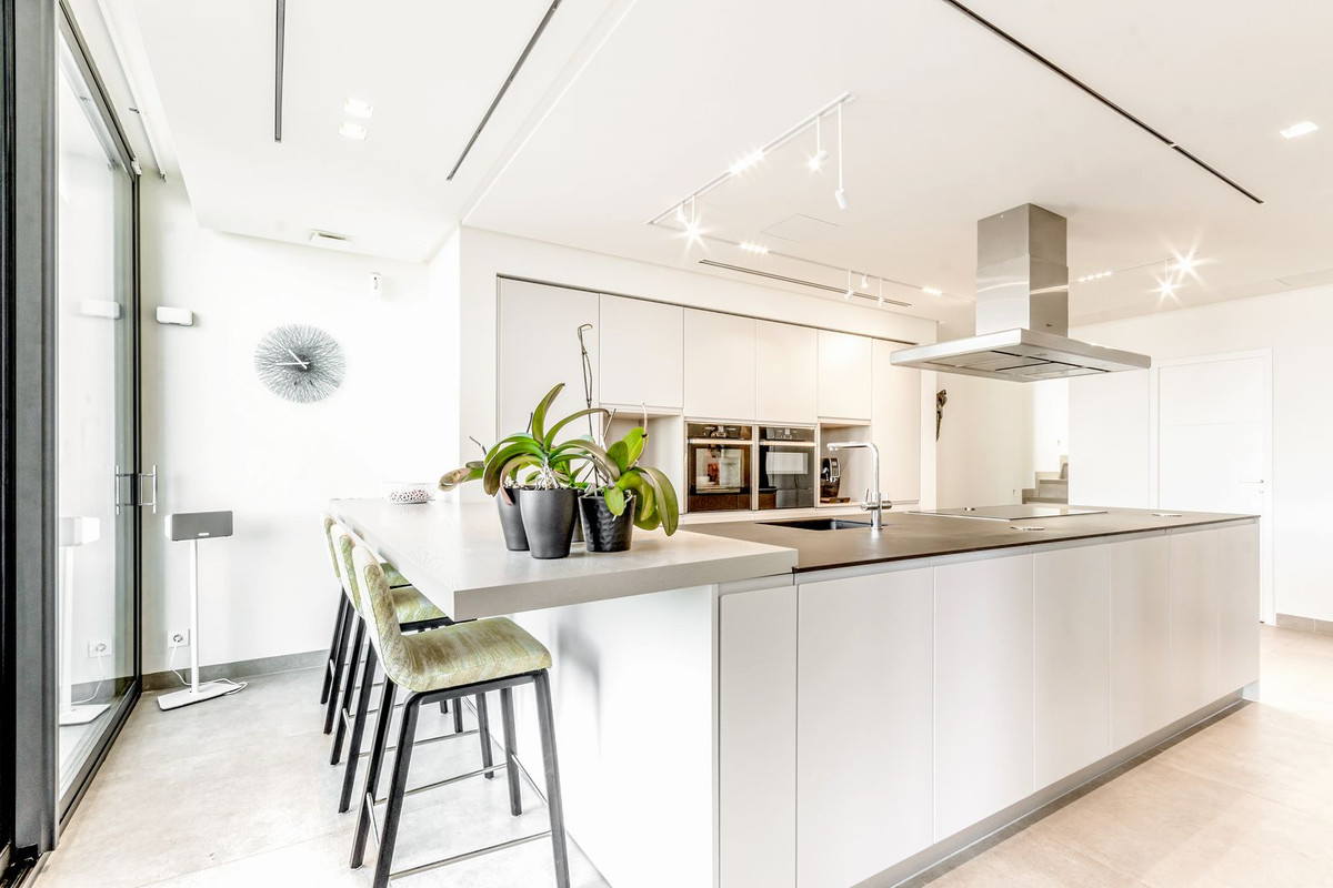 The completely renovated property is distributed over 3 floors, on the ground floor with a large open-plan living room, with a guest toilet, an American kitchen and dining room, we have access to a fantastic terrace with an outdoor dining chill-out area, a magnificent swimming pool with open views of the Atlantic Ocean.