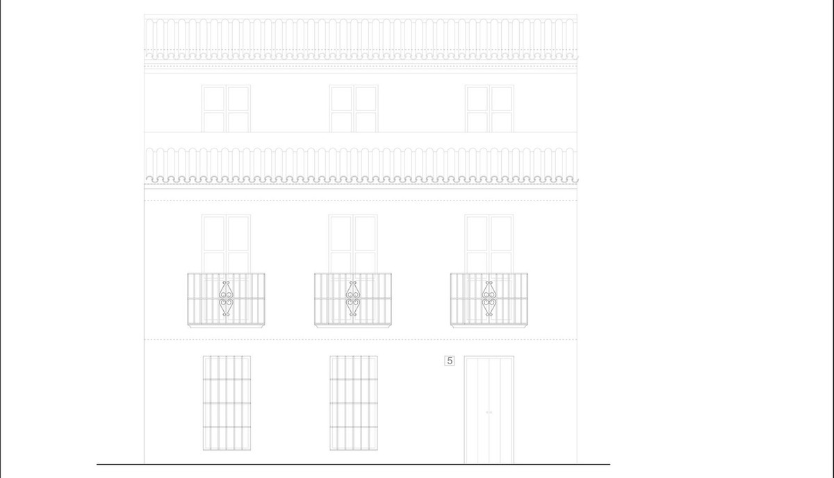The middle floor is dedicated to comfort, with three spacious double bedrooms, each boasting a private en-suite bathroom and ample room for built-in wardrobes. Two of the bedrooms face the street, adorned with traditional Juliette balconies, while the third overlooks the patio, offering a quieter ambiance. A centrally located TV/library room connects these rooms and provides access to a shared terrace with views of the patio and summer kitchen area.