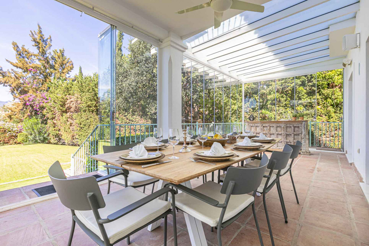 Villa for sale in Elviria, Marbella with 5 bedrooms, 5 bathrooms and 5 en suite bathrooms, with private swimming pool, private garage and private garden. Regarding property dimensions, it has 505 m² built and 1,500 m² plot. Has the following facilities air conditioning, central heating, fully fitted kitchen, guest room, barbecue, private terrace, kitchen equipped, living room, covered terrace, garden view, pool view, close to sea / beach, close to golf, uncovered terrace, games room, balcony, optional furniture, good condition, close to shops, close to town, close to schools, office room and partial sea views.