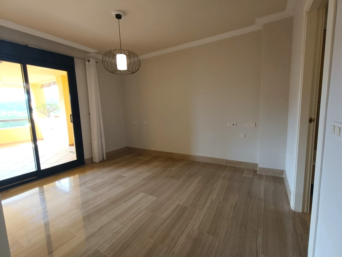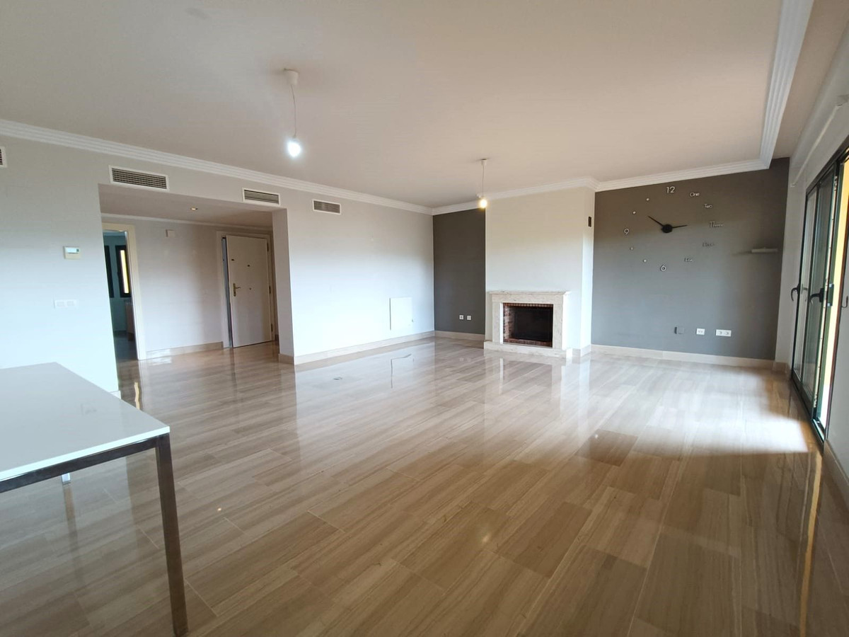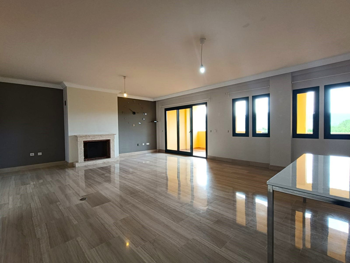 Sotogrande Alto: Discover the highest level of comfort and elegance in this stunning 3-bedroom, 3-bathroom apartment with panoramic views of the prestigious Almenara Golf Course and its tranquil lake. This exclusive residence is designed to offer a sophisticated lifestyle, featuring a fully equipped kitchen, a practical utility room, and a guest cloakroom. The spacious living and dining area, complete with a cozy fireplace, opens onto a large terrace perfect for enjoying the scenic landscape.