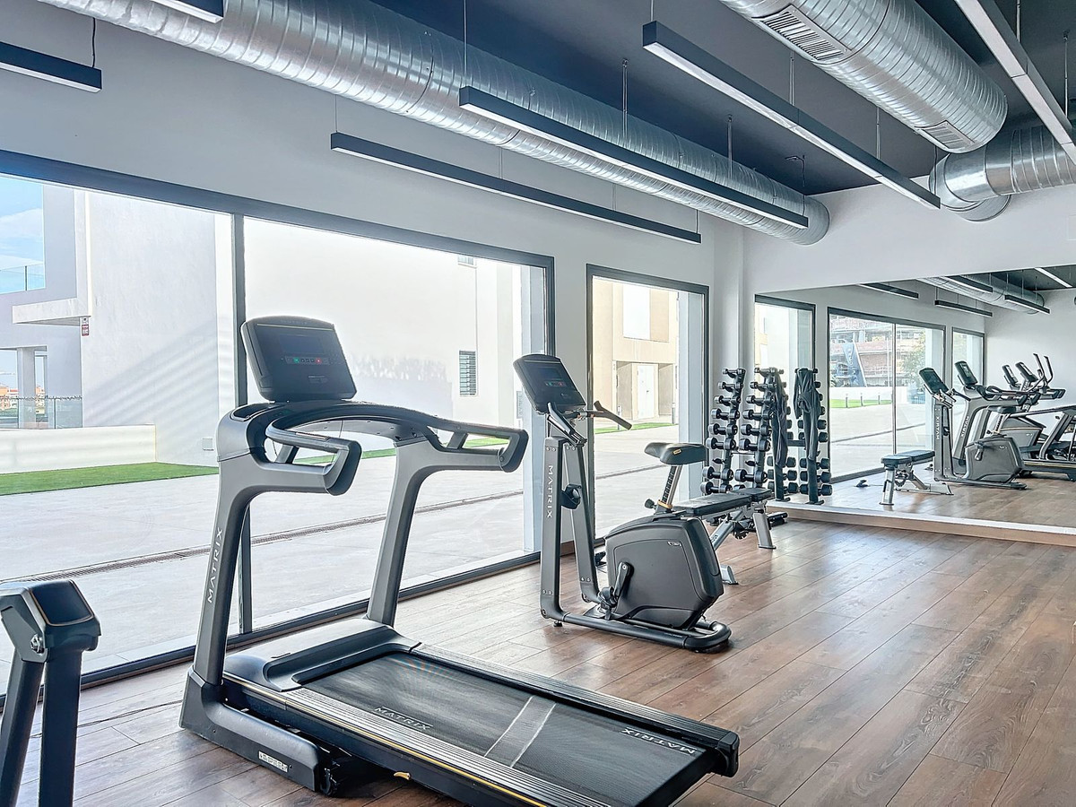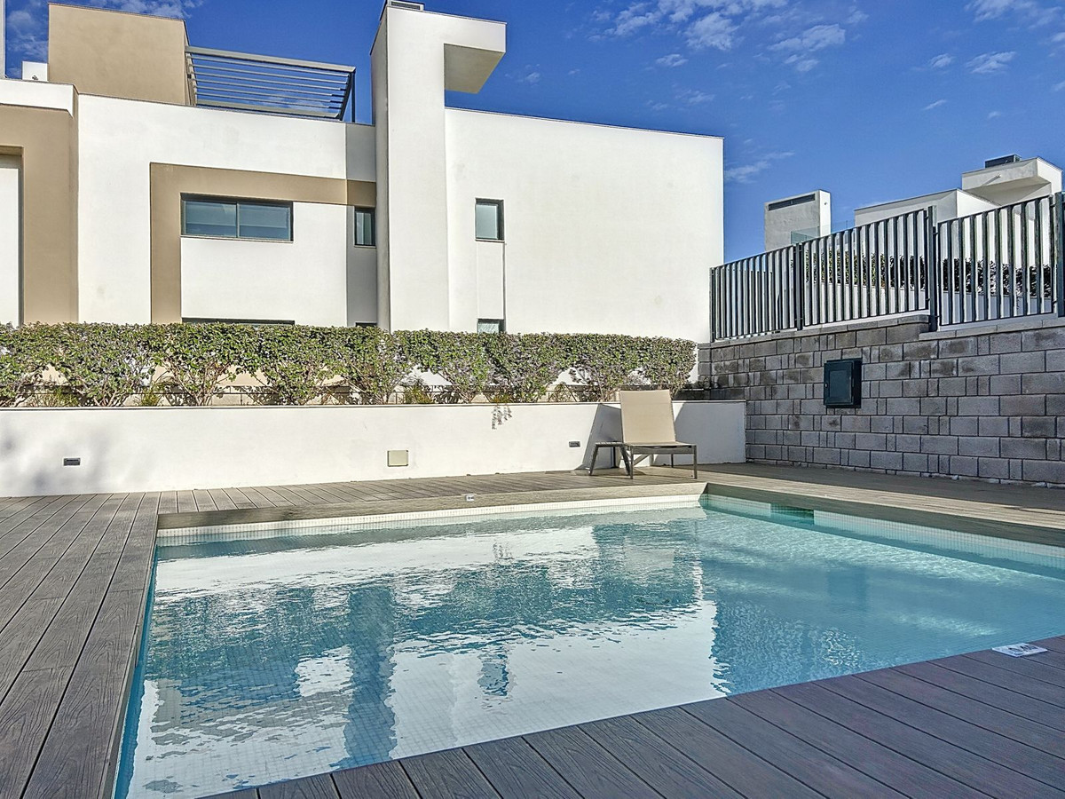 Thoughtful improvements have been made to create a cozy, elegant atmosphere, with an open-plan living area filled with natural light and a fully equipped kitchen for preparing meals and entertaining. For ultimate comfort, the apartment includes efficient aerothermal heating and cooling, and residents enjoy access to exclusive amenities, such as adult and children's pools, a gym, and a relaxing sauna.