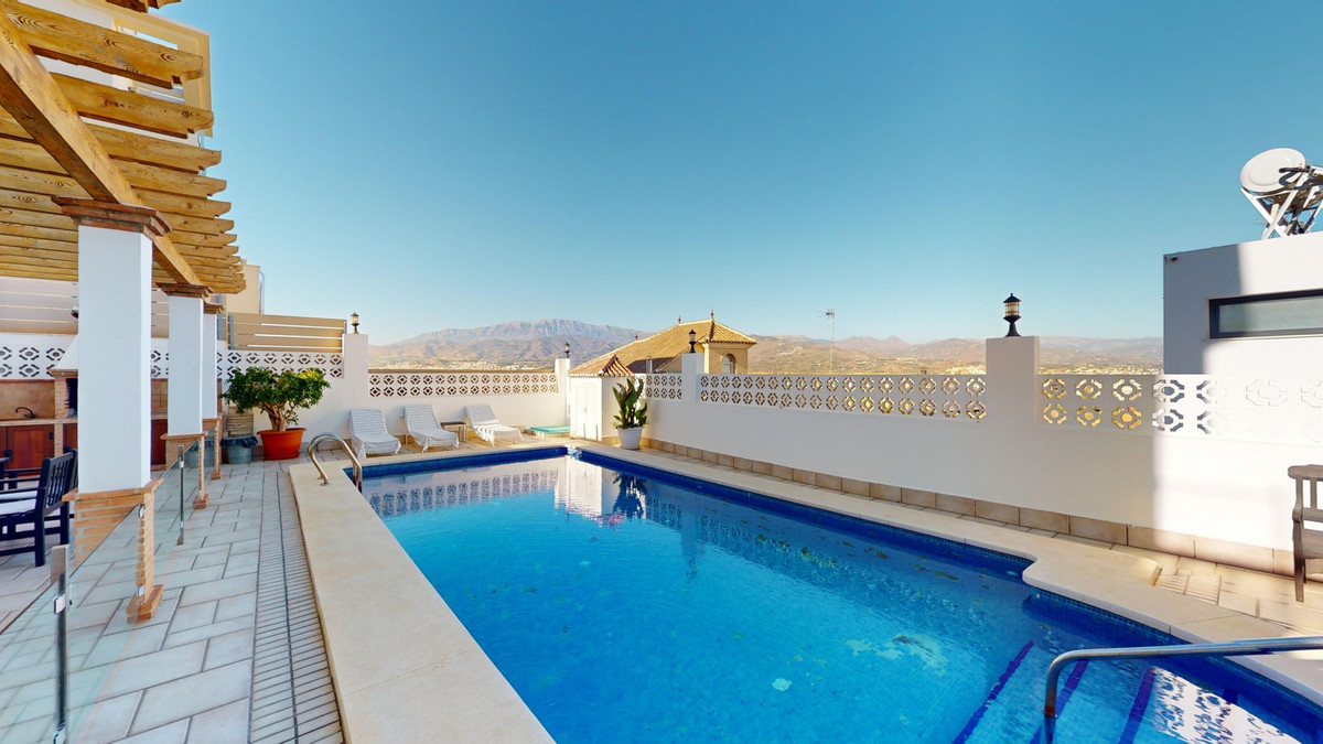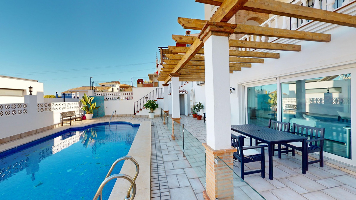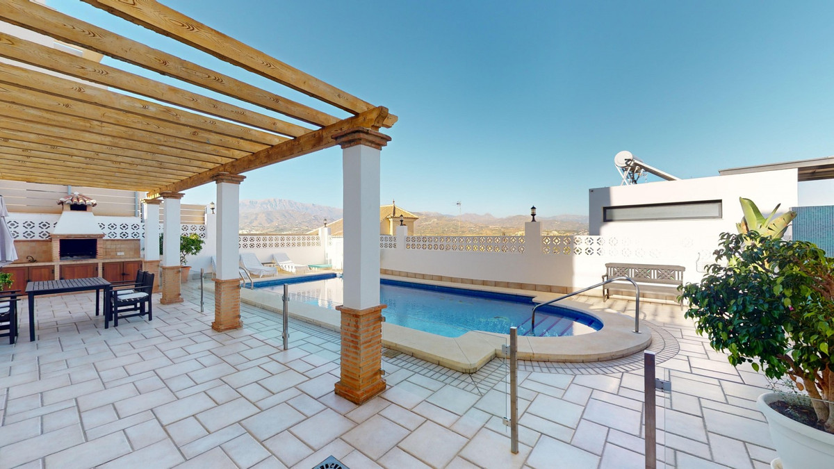 Discover your dream Mediterranean lifestyle in this exquisite 3-bedroom, 4-bathroom haven nestled in a private, gated community in Torre del Mar, where tranquility and security are paramount. This exclusive urbanization with only a few neighboring residences ensures privacy and peace, just minutes from the vibrant center of Torre del Mar and only 5 minutes from its stunning beaches. Spanning three sunlit floors and covering 204 square meters, this masterpiece seamlessly blends modern luxury with traditional Spanish charm. Step into a world of elegance, where rustic wooden beams adorn high ceilings, creating an ambiance of warmth and sophistication. The open-concept living and dining area invites you to relax and entertain, filled with natural light streaming through large windows offering tantalizing views of the lush surroundings. The gourmet kitchen is a culinary enthusiast's dream, featuring sleek wooden cabinetry, premium granite countertops, and state-of-the-art appliances, with large windows offering a scenic backdrop. The tranquil primary bedroom, a spacious 16 m2 sanctuary, combines style and comfort, while six luxurious bathroomsincluding one with turquoise accentsprovide spa-like relaxation at home. Designed for discerning buyers, the house offers a perfect blend of aesthetics and functionality, including a laundry room and ample storage spaces for comfortable living. Enjoy seamless indoor-outdoor living with multiple spaces to bask in the renowned Spanish sun, perfect for entertaining or quiet moments alike. Located just a short drive from Torre del Mars bustling promenade, this property offers the ideal blend of peaceful living and easy access to local amenities, including shops, cafes, and restaurants. Torre del Mar is a vibrant coastal town known for its beautiful beaches, charming seaside atmosphere, and excellent dining options. Embrace the Mediterranean lifestyle and make this stunning home your personal paradise. We are pleased to be able to present this dream property to you soon, either personally or via virtual viewing. Because this world is uniquejust like our Axarquía. In Andalusia. On the Costa del Sol. Here, on the sunny side of life...