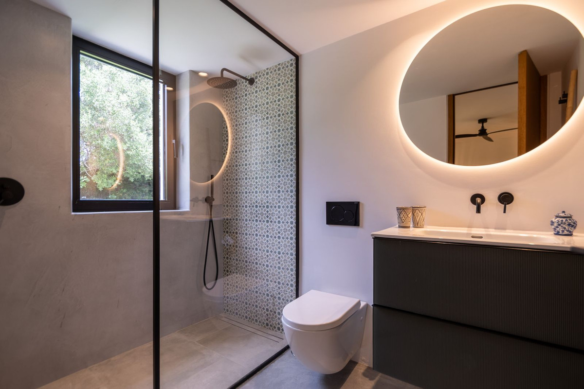 The main house features 3 en-suite bedrooms, bright living areas, wooden beam ceilings and high-quality finishes, combining Andalusian style with modern renovation.