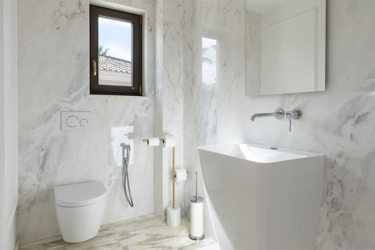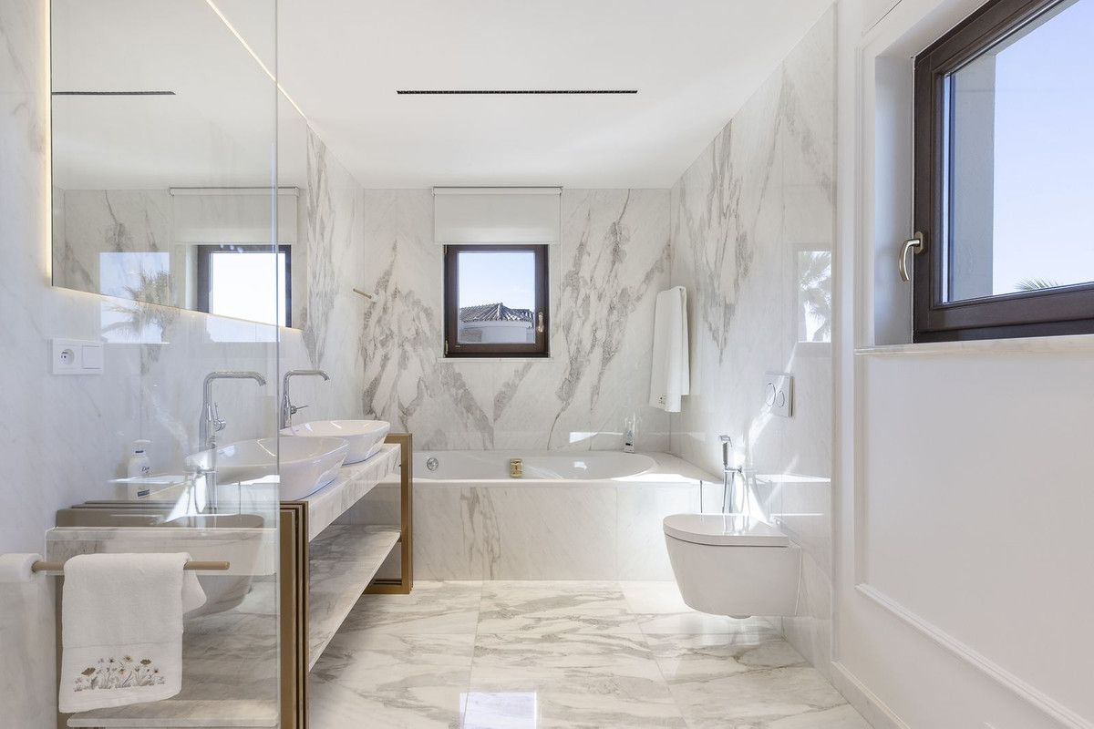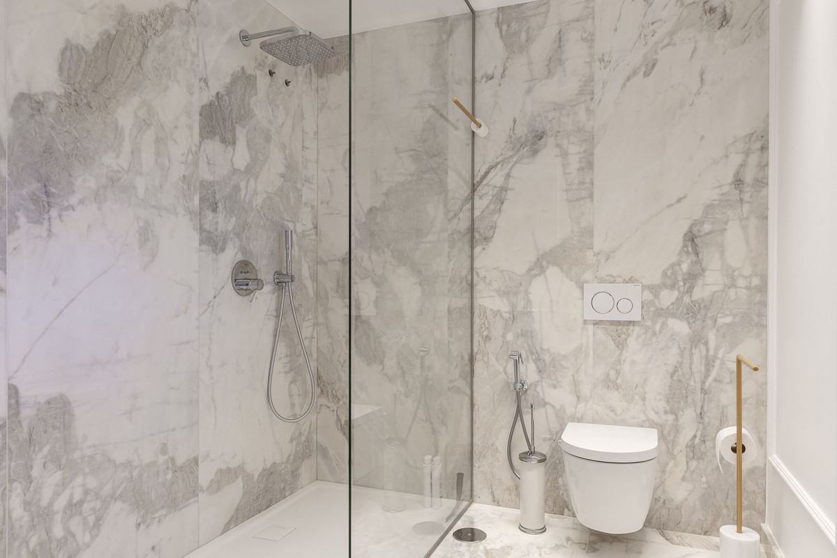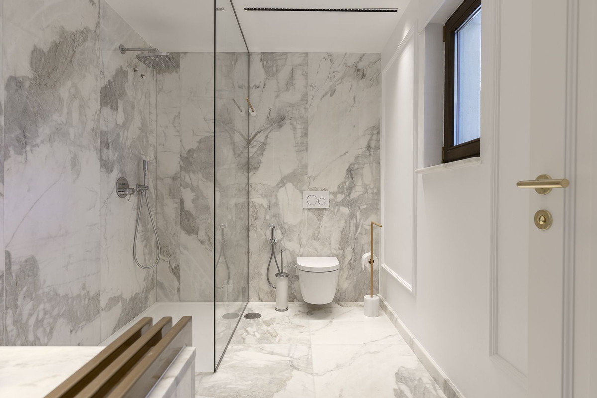 ✅ Portugisisk marmor av högsta kvalitet på golv och uppvärmda väggar i badrummen
