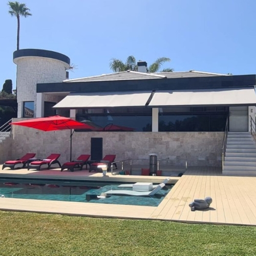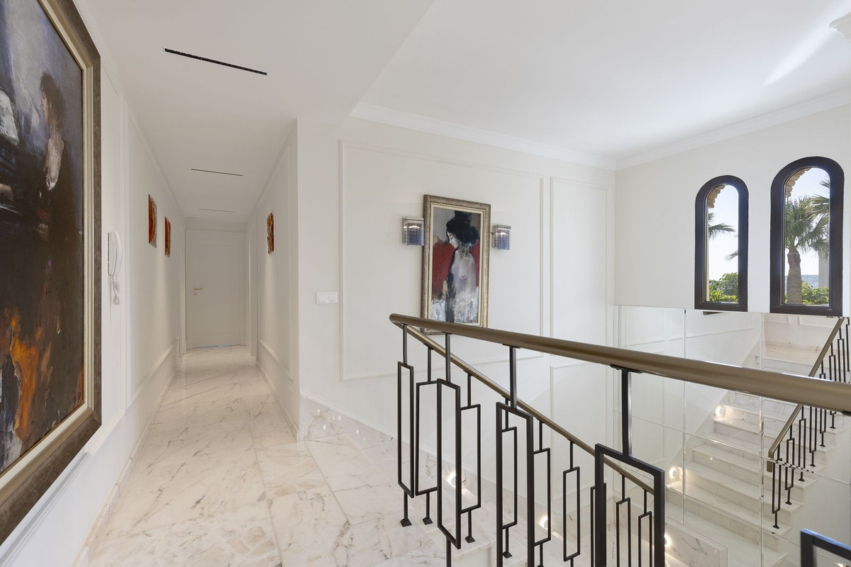Belägen i prestigefyllda Mijas Golf, erbjuder denna imponerande villa med 3 våningar en perfekt kombination av elegans, innovation och komfort. Med 6 sovrum, 4 badrum + WC och 5 rymliga terrasser är den designad för att imponera: