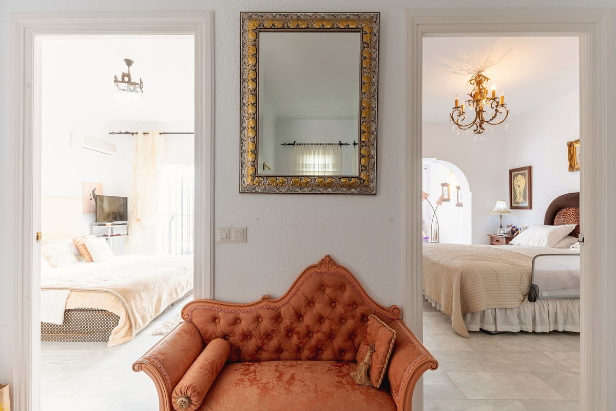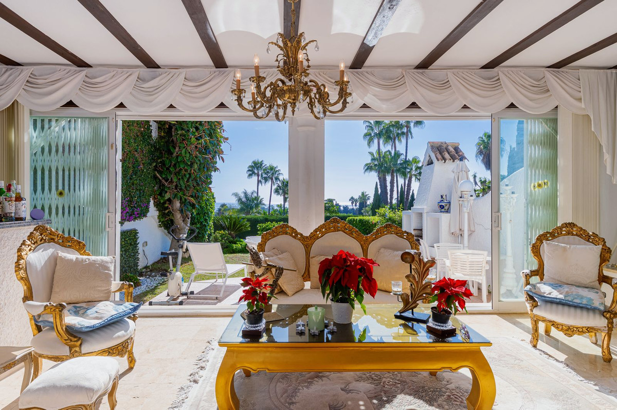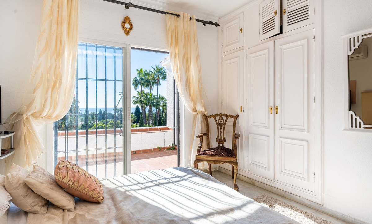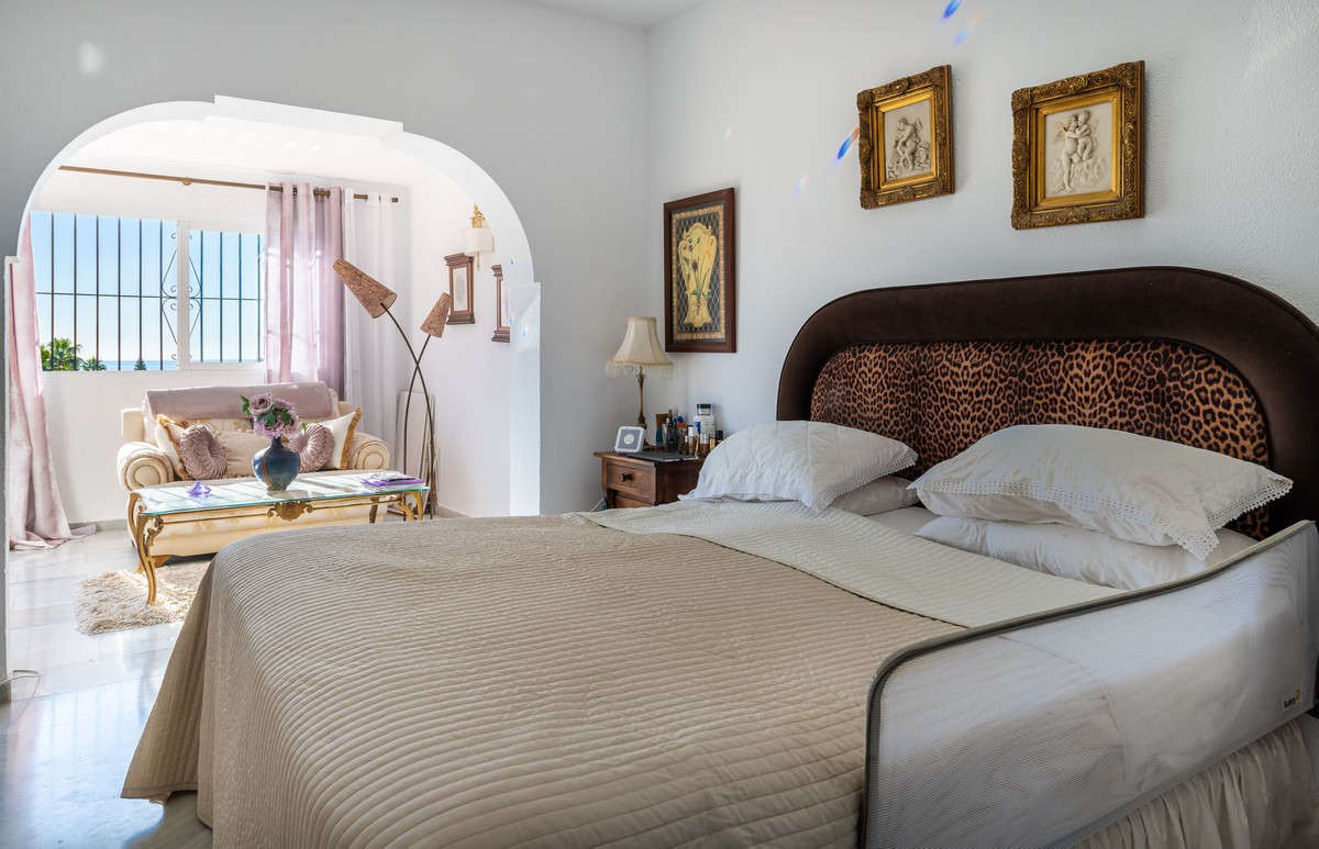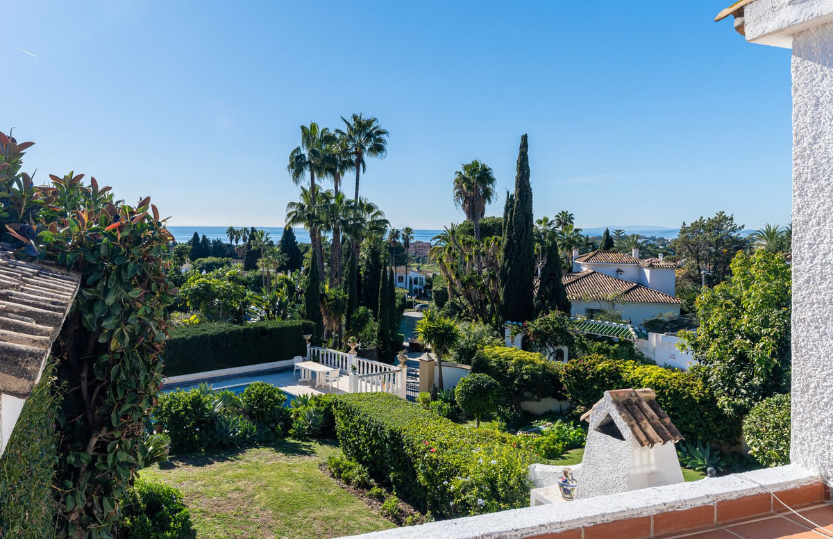 Utsökt havsutsikt semi-fristående villa fördelat på 2 rymliga nivåer med en vacker privat trädgård framför poolen omgiven av utsikt över flera höga tropiska palmer. Expertdesignad interiör och exteriör layout designad för att accentuera den avundsvärda andalusiska blommiga karaktären och atmosfären och atmosfären med panoramautsikt över havet. Önskvärt beläget inom en exceptionellt lugn tropisk palmkantad bostadsväg i El Paraiso, bredvid den berömda El Paraiso 18-håls golfbanan och mindre än 1 km från havet och de utsökta stränderna i Costalita.