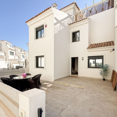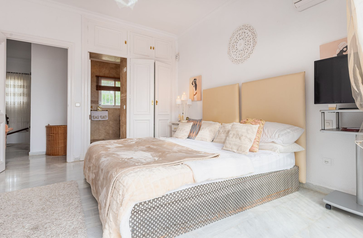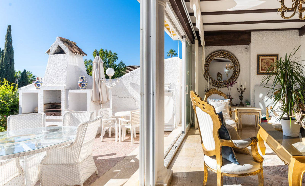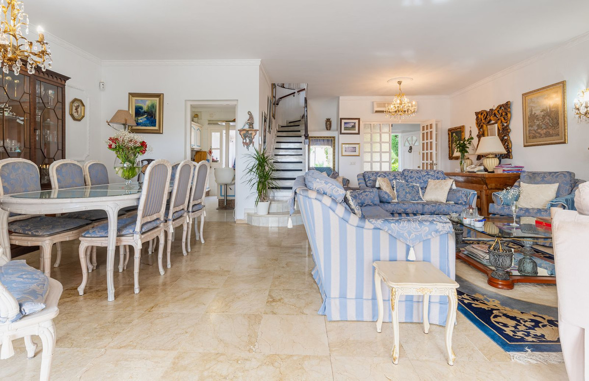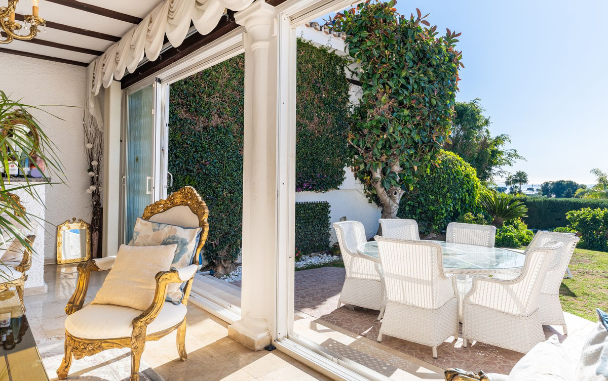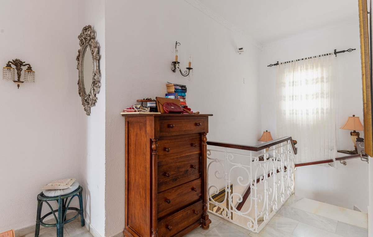 Utsökt havsutsikt semi-fristående villa fördelat på 2 rymliga nivåer med en vacker privat trädgård framför poolen omgiven av utsikt över flera höga tropiska palmer. Expertdesignad interiör och exteriör layout designad för att accentuera den avundsvärda andalusiska blommiga karaktären och atmosfären och atmosfären med panoramautsikt över havet. Önskvärt beläget inom en exceptionellt lugn tropisk palmkantad bostadsväg i El Paraiso, bredvid den berömda El Paraiso 18-håls golfbanan och mindre än 1 km från havet och de utsökta stränderna i Costalita.