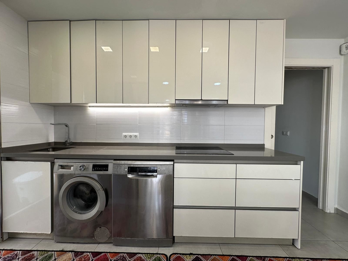Köket är väldisponerat med goda förvaringsmöjligheter och arbetsytor.