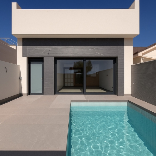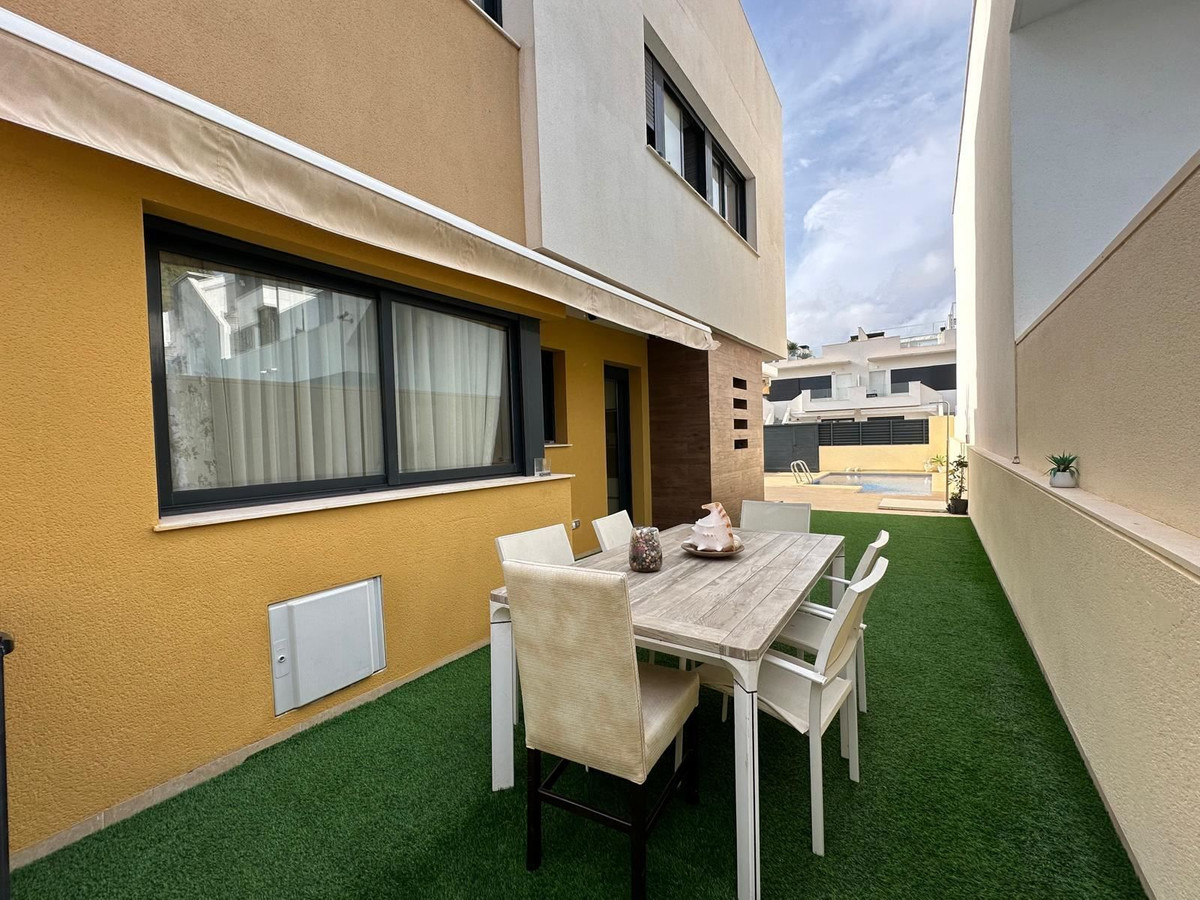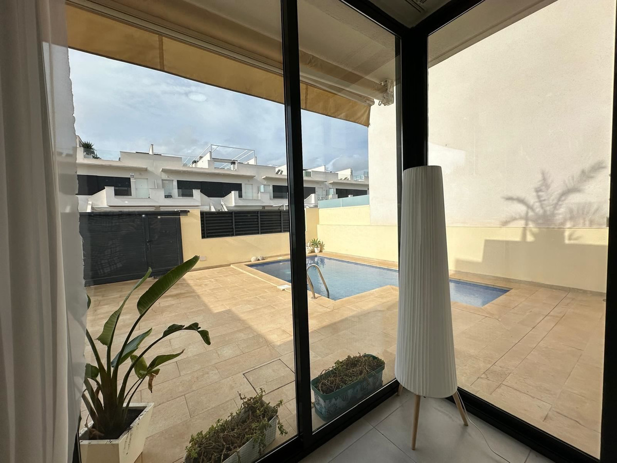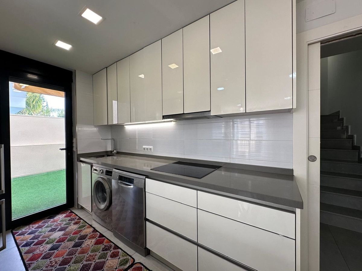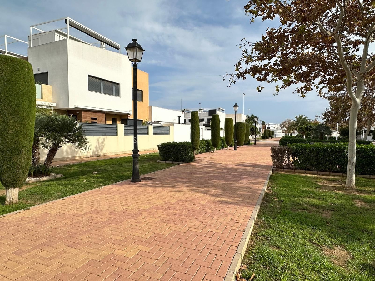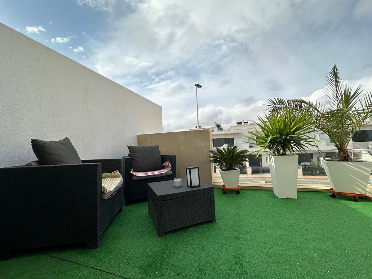 Välkommen till det populära området San Pedro del Pinatar och denna moderna och välplanerade villa med privat pool. Villan består av tre sovrum, tre badrum samt vardagsrum och kök i en öppen planlösning. Till detta kommer en rymlig terrass med plats för utemöbler och en solig takterrass.
