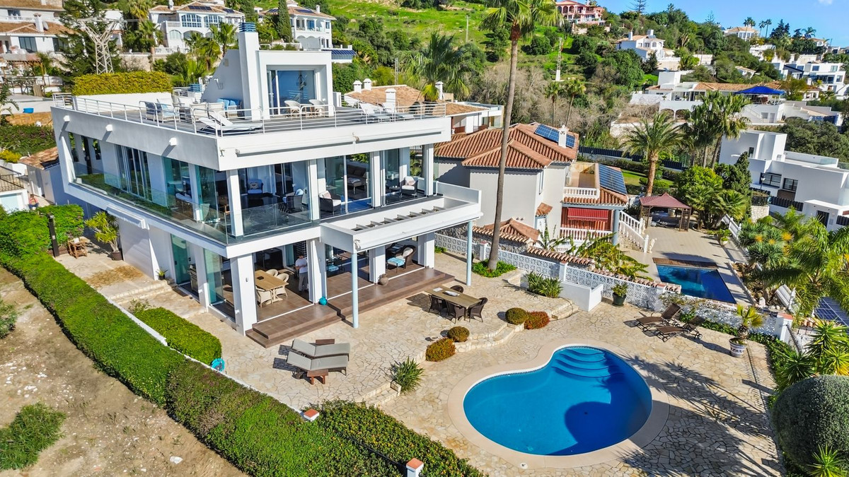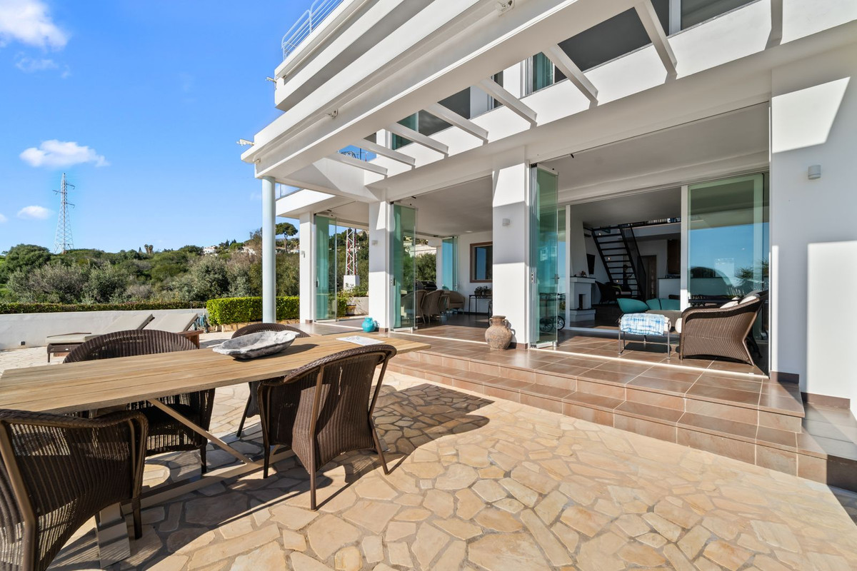 Högt belägen i det eftertraktade området La Capellania ligger denna imponerande moderna villa med enastående utsikt över Medelhavet. Med sin eleganta arkitektur, generösa ljusinsläpp och sofistikerade detaljer skapas ett hem som utstrålar både exklusivitet och komfort.
