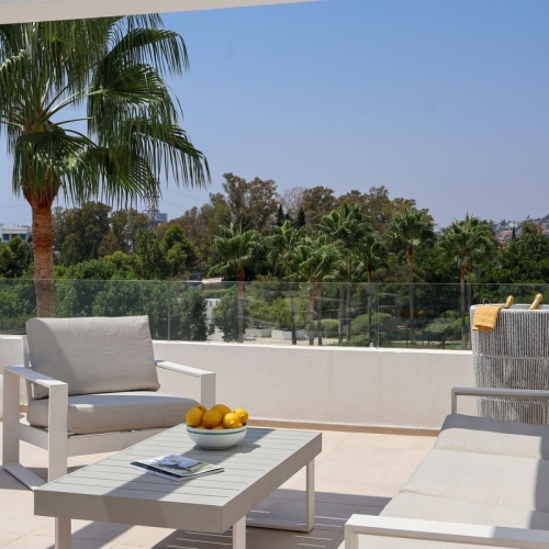 Discover this exceptional Andalusian-style apartment in the sought-after El Paraiso Hills. Enjoy a stunning 190m² wraparound terrace with panoramic sea views, private pool, sun deck, BBQ area, and spaces for dining and lounging, all perfect for year-round enjoyment.