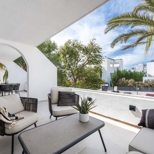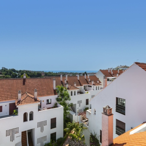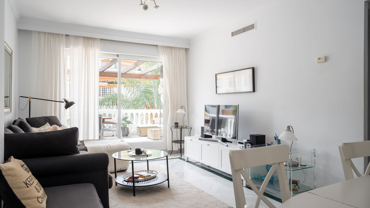The apartment has been recently updated to modern standards, providing a sleek and contemporary living space. The community offers excellent amenities, including a large pool area, Padel courts, and an on-site restaurant, ensuring both comfort and convenience. Additionally, the location is unbeatable, with just a short stroll to the beach, shops, and local attractions. This penthouse is ideal for those seeking a stylish, sun-filled retreat in a vibrant and well-serviced neighborhood.