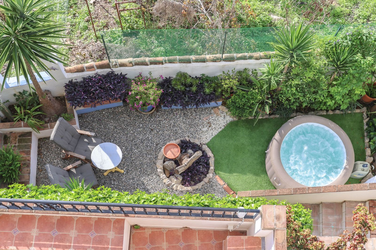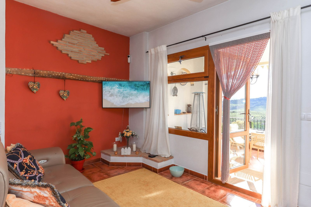 The lounge sits to the rear of the property, the perfect spot! a large picture window frames the mountain views with a patio door leading you directly to the shaded covered terrace. It is quite rare to find a town house with a terrace leading from the lounge AND a view. Stairs lead down to the secluded garden with BBQ area and then again the 'sun spot' that is the lower garden.
