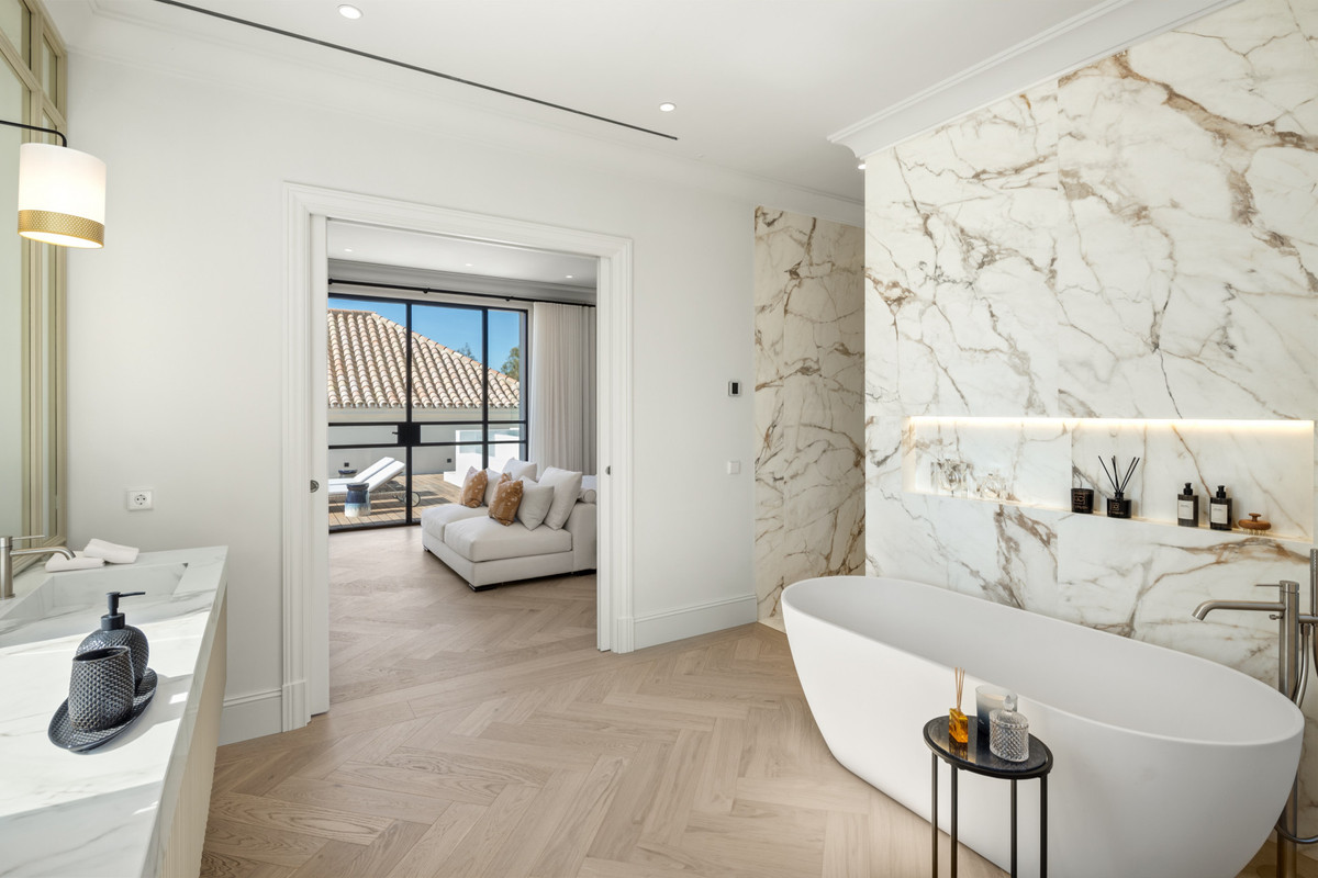 The basement is an entertainment oasis, featuring a stylish bar area, a cinema room, and a fully climate-controlled gym, ensuring that leisure and fitness are always within reach. This villa offers an exceptional lifestyle for those seeking luxury, comfort, and style in one of Marbella's most desirable locations.