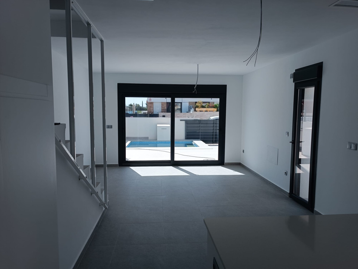 Nybyggda parhus i den nya delen av Daya Nueva. Bara några minuters promenad till stadens centrum. 3 sovrum, 2 badrum, privat liten pool och 18 m² terrass med dekorativ vattenvägg. Vardagsrum/matsal med öppen planlösning, sovrum med inbyggda garderober och badrum en suite på bottenvåningen. På övervåningen finns två sovrum med garderober och ett badrum.
